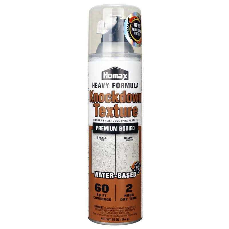 Match the wall pattern in your home for an invisible repair that hides minor imperfections with the Homax Knockdown Wall Texture. The spray is specially formulated for patching knockdown or Southwest style drywall textures. Once applied using the can’s adjustable nozzle, this premium-bonded wall spray texture is simply knocked down using a drywall knife for a nice touch up. This product is low odor and is also easy to clean up with water.