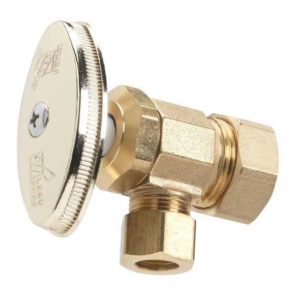 O.D. compression multi-turn angle shut-off Valve controls water flow to a plumbing fixture. It is used where the water pipe enters the room to allow for easy shut-off of water flow to the end fixture without having to turn water off to the entire home. Compatible with copper or PEX (PEX installations require a stainless steel tube insert) Rough brass finish 1/2 in. nominal compression x 3/8 in.