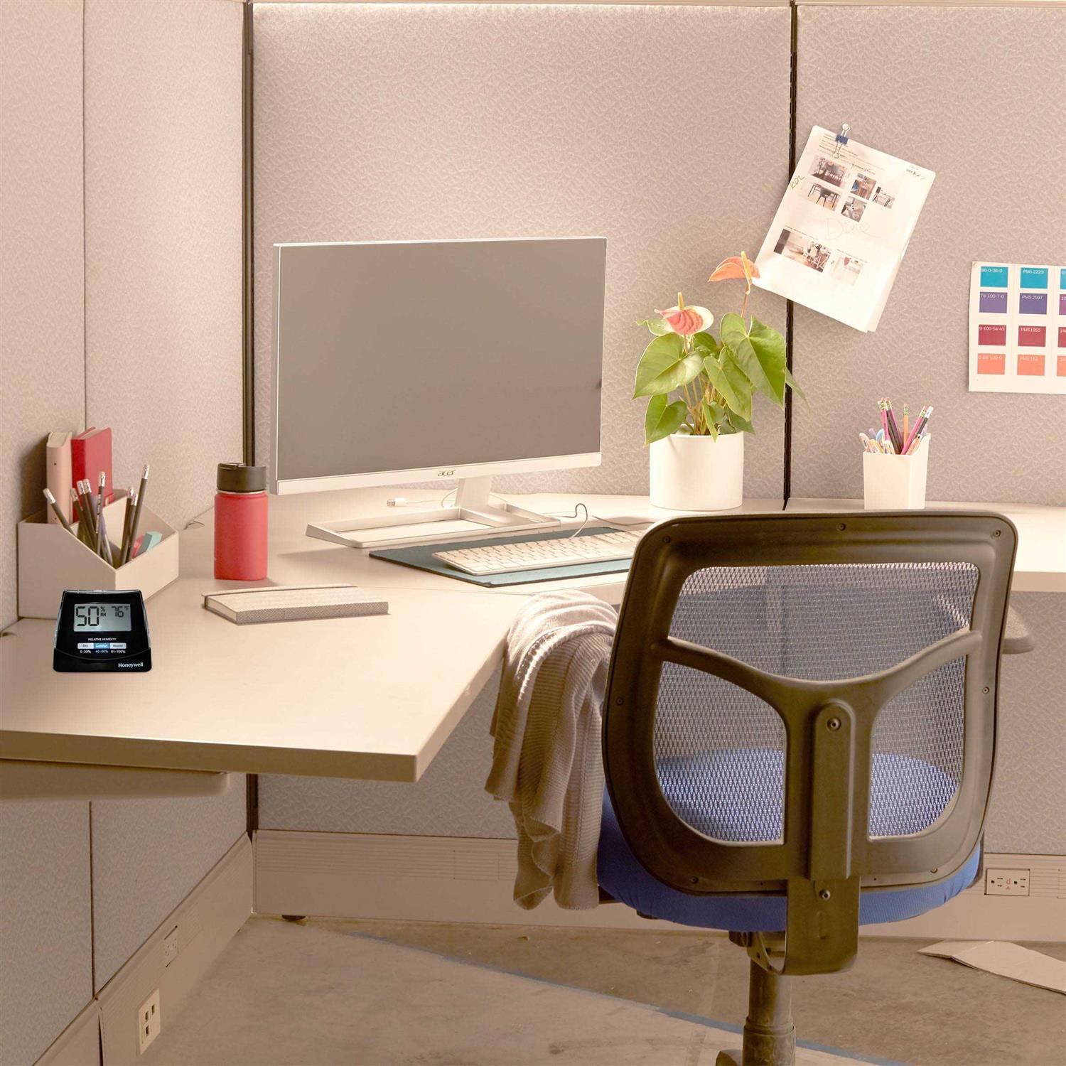 The Honeywell Humidity Monitor helps you maintain comfortable humidity levels in your home by monitoring the humidity level. Ideal humidity level is between 40-60percent relative humidity (RH). Relative humidity (RH) is the amount of moisture in the air compared to how much moisture the air can hold. The higher the RH, the more humid it feels. The warmer the air, the more moisture it can hold. That’s why it feels more humid in the summer. Cold air does not hold as much moisture as warm air. In cold winter months, a humidifier can add moisture to the room air, making the room feel more comfortable. Raising the humidity level in a cool, dry room also makes it feel warmer.