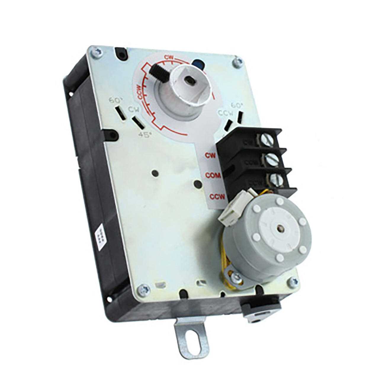 Used to control dampers in applications such as variable air volume (VAV) terminal units and for mounting on ball valves; suitable for use with SPDT or floating thermostats or building automation controls. Features Control for air damper applications with up to10 sq.ft. assuming 3.5 in-lb per sq.ft. of damper area, velocity independent. Superior A/C synchronous submotor for consistent timing and actuator longevity. Eliminate need for limit switches or mechanical stops by providing magnetic coupling. All models include manual declutch lever, and bag assembly with two minimum position setscrews. Mount directly on 3/8 inch or 1/2 inch square or round damper shaft. Selectable 45, 60, and 90 stroke in either clockwise or counterclockwise direction.