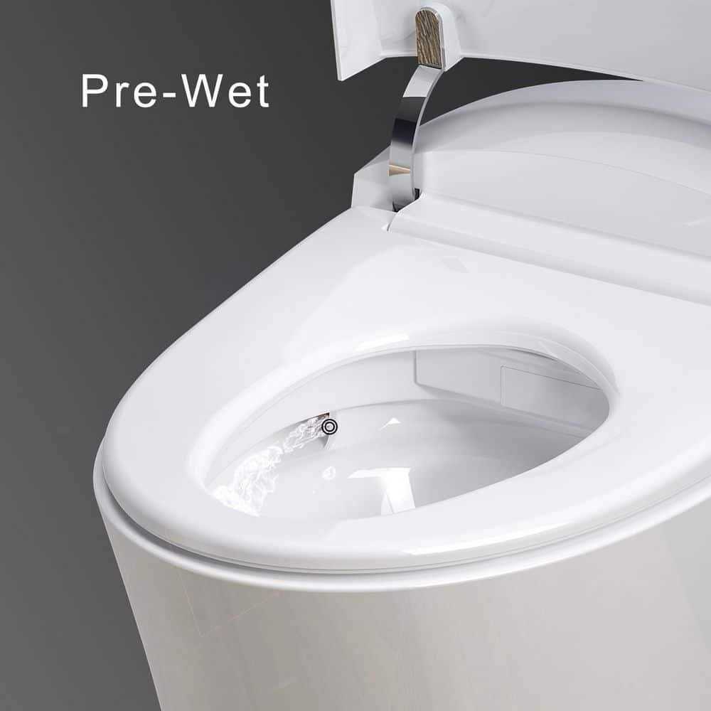 When you take your rightful place on the toilet, you can feel the warmth of the heated seat. The seat has seat-warming temperature settings that are especially useful during cold days. The automatic Pre-wet sprays the Microcrystals toilet bowl surface. Microcrystal, the innovative glazing technology, prevents waste from sticking to the bowl. The combination of the Pre-wet and Microcrystals help to clean, reducing the amount of water. An automatic air deodorizer activates to hide the unpleasant smells. As your journey comes to a close, the powerful flushing of the 3D Tornado Flushes and the Bowl Bottom Flushes, aided by the premium glaze whisks away all of the evidence. Please note that this smart toilet does not come with a hip flush function. Color: White.