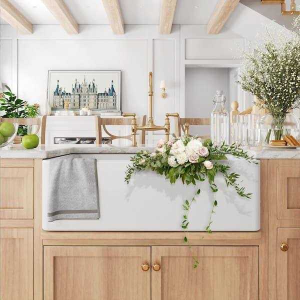 Our handcrafted single bowl sink showcases the classic beauty of the farmhouse style with modern enhancements for ultimate functionality. The 30 in. sink is a beautiful focus point for your kitchen and provides generous space for filling pots, stacking dishes, cleaning, and preparing meals. The HOROW sink is designed to withstand the needs of a busy kitchen without sacrificing the classic look of an authentic farmhouse sink. The single bowl, apron-front sink features a crisp white finish that brings clean, timeless beauty to your kitchen. All HOROW sinks are guaranteed to not chip, crack, stain, or rust. The HOROW single bowl farmhouse sink from our fireclay collection is functional, reliable, and priced with you in mind.