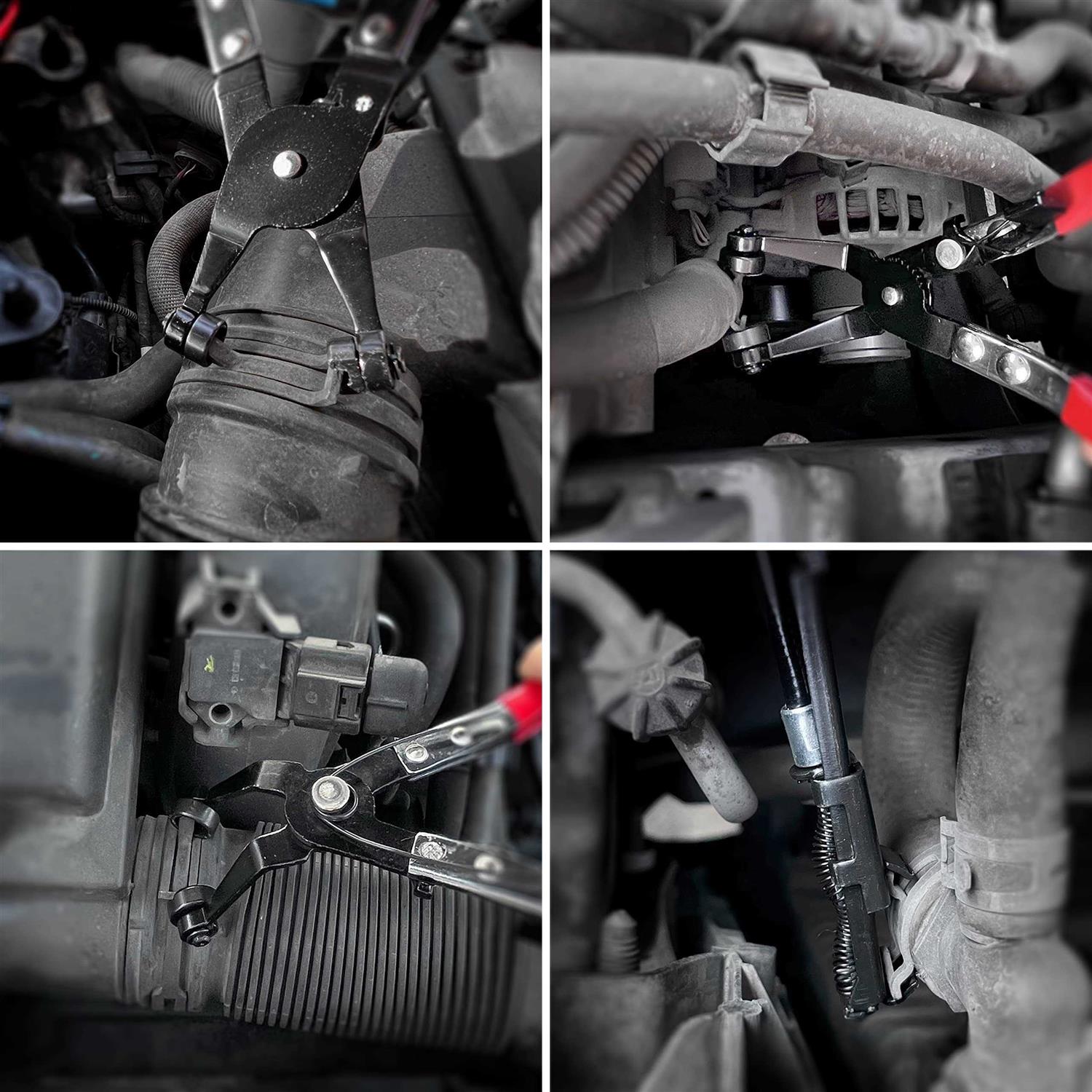 Professional Hose Clamp Pliers Set: Includes long reach wire spring hose clamp plier,angled hose clamp plier and flat band hose clamp plier for complex and difficult vehicle engine bay areas. Premium Material: Hose clamp pliers are made of high quality carbon steel with heat treated surface for strength and toughness.The comfortable PVC handle can relieve hand fatigue and speed up work efficiency. Sturdy Spring-lock Design: The locking feature makes it easy to adjust the opening size of the hose clamp pliers and keep them open.The spring is firm and not easy to fall off to prevent finger injury. Wide Range of Applications: Suitable for the repair,removal and installation of various hoses such as fuel lines,radiator hoses and water hoses for most car,truck and motorcycle engines.