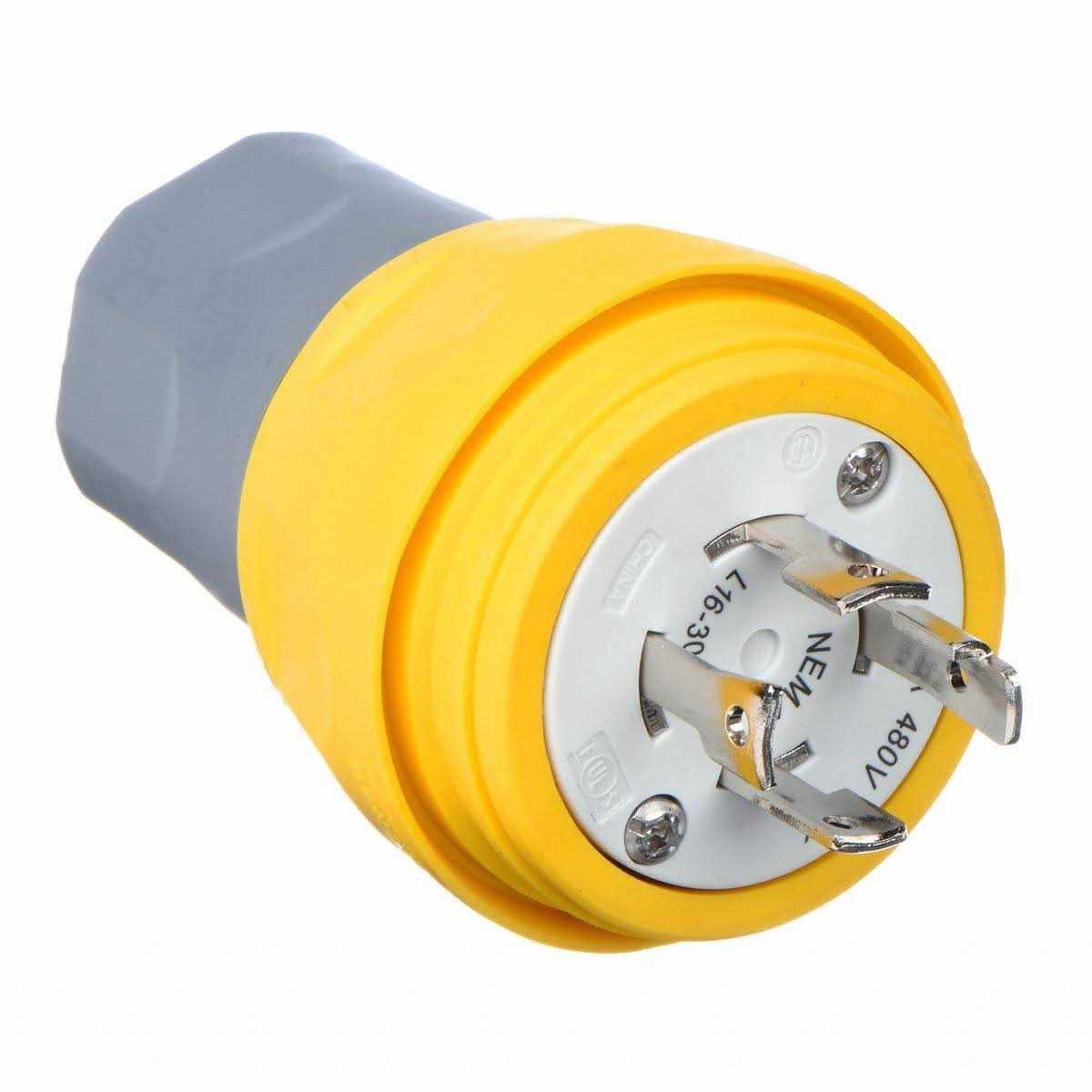 - Plugs and Receptacles Industrial, 480V AC, Number of Poles 3, Number of Wires 4, L16-30P, Yellow, Amps.