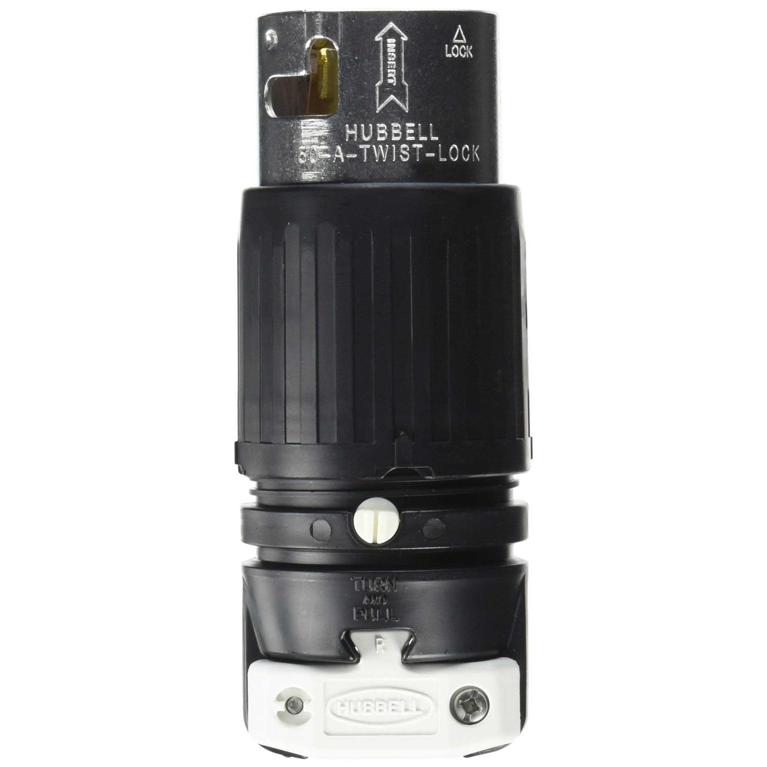 Accidental power interruptions this black/white locking plug from Hubbell Wiring Device-Kellems is a great choice. This locking plug has a Non-NEMA 4 Blade configuration with a voltage of 125/250Vac and an amperage of 50. It has 3 poles and 4 wires. It has 1 phase. It is made of super tough nylon material. This has a grade of industrial. Standards include: Ul/csa.