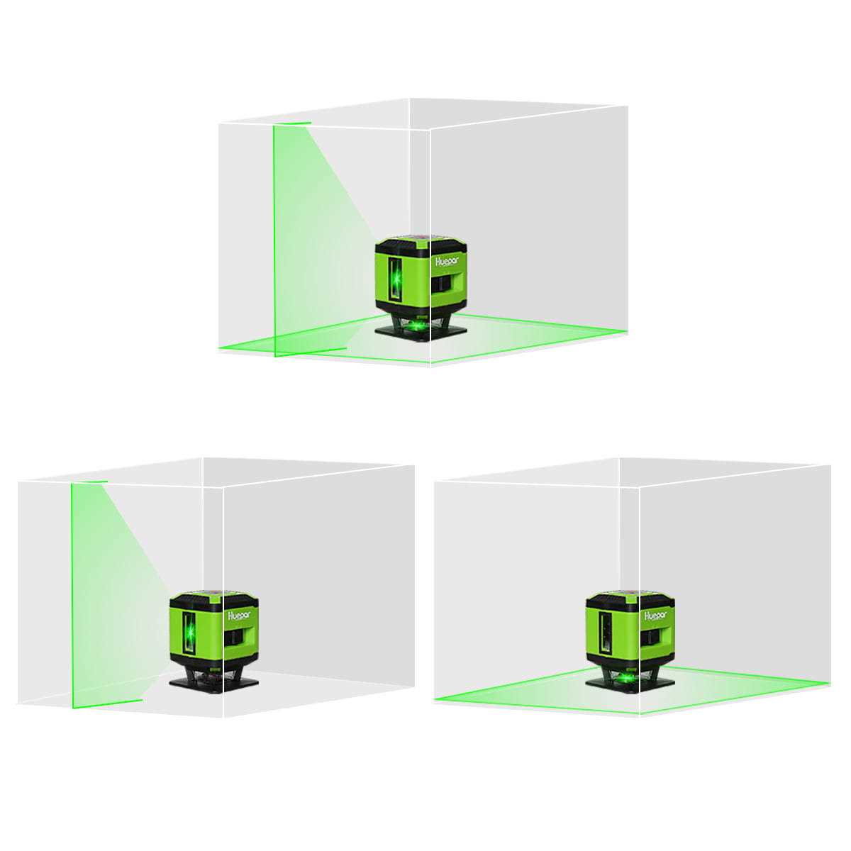 Huepar has a team of professional engineers and designers. Constantly promote and provide products and services for high-end markets, pursuing technological innovation and quality commitment. Huepar Green Laser Enhancement Glasses GL01G 7.97$ Huepar 19.7 inch Lightweight Adjustable Aluminum Tripod TPD05 27.97$ ONLY 1/3 feet: Huepar FL360G has the shortest distance (1/3 feet) from sea level. This means that you will get the true laser level dedicated for tile laying on the market today. Ideal for tile alignment, wall studding, windows, doors, etc. And only apply to indoor working. PATENTED PRODUCT: The innovative design make FL360G more professional and convenient for tile leveling. 360-degree horizontal laser provides all-around leveling coverage over a 20m diameter. EASY FAST AND ROBUST:Because of 360-degree horizontal laser line, you can save time on continuous leveling compared with the traditional level. Many people can do the tile laying at the same time at the each corner. Water and dust-proof to ensure years of dependable operation. THREE LASER-LINE MODES:Horizontal line, vertical line, cross lines (without any lock or plumb function). Leveling accuracy is +/- 0.2mm at 1m. The laser beam will flash quickly when Huepar FL360G outside of 3 degrees. Battery life up to 6 hours. Includes magnetic bracket for flexible applications. 1/4” thread on bottom for camera tripod mount.