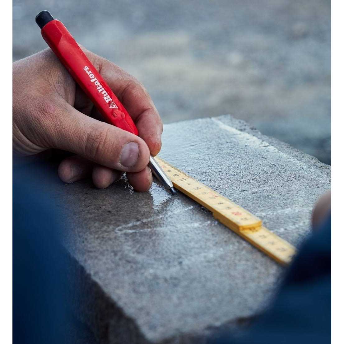Hultafors Dry Marker Grip-friendly and ergonomic design. Roll stop on both pencil and holster. Sharp and accessible sharpener placed in the holster. Optimized lead for durability and resistance to moisture. Refill available with 10 leads in a smart container. Grip-friendly pencil in holster with built-in sharpener for clear markings. Hultafors Dry-Marker is easy to remove from its holster, so you do not have to let go of what you are working with. The shape of the holster ensures that the pen stays in place even when you move. The pen’s sharpener is in the holster for easy access. Via a hole in the bottom of the holster, dirt and moisture are led away from the pen for a longer durability. Easy to change lead.