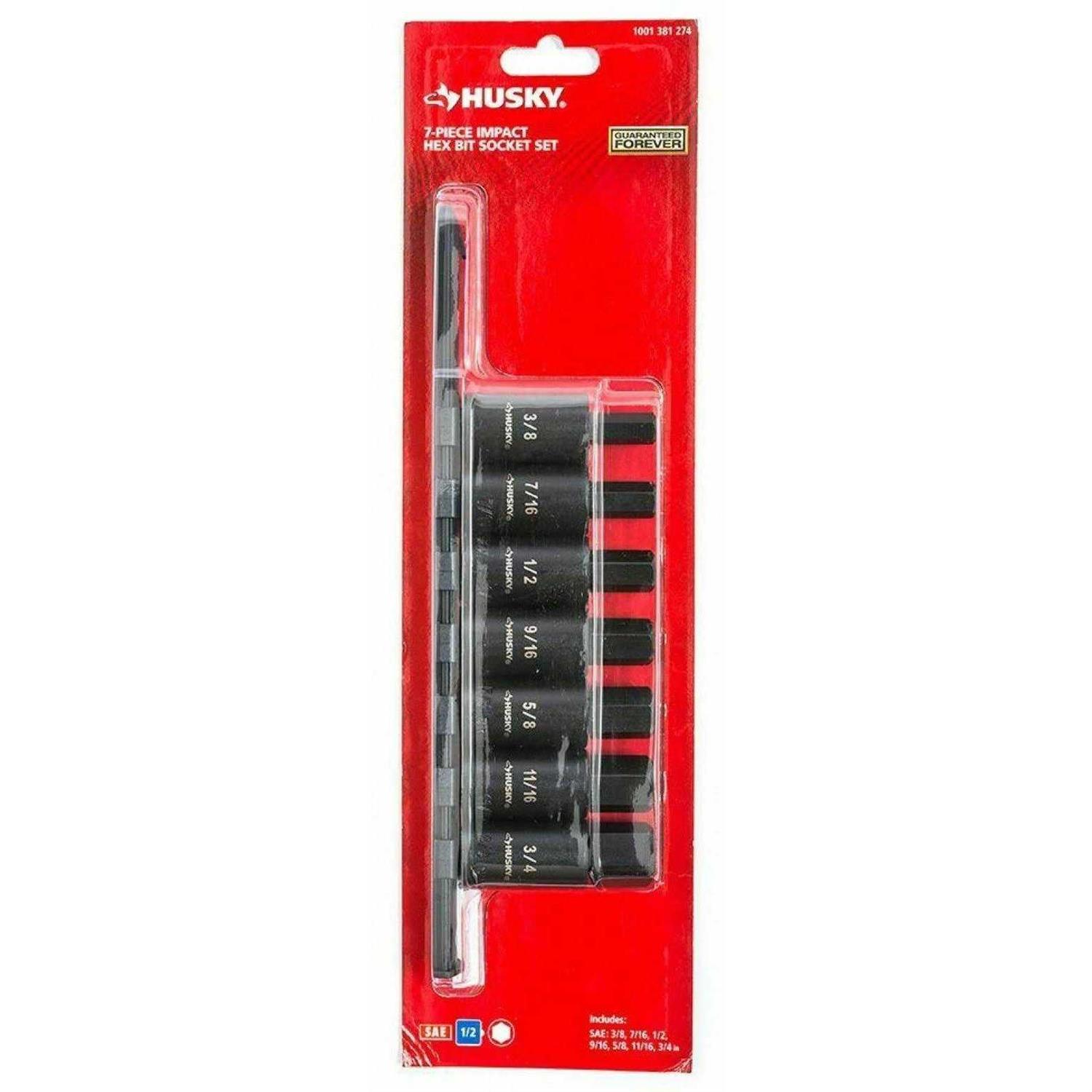 Husky 1/2 in. Drive Hex Bit Impact Socket Set SAE (7-Piece)