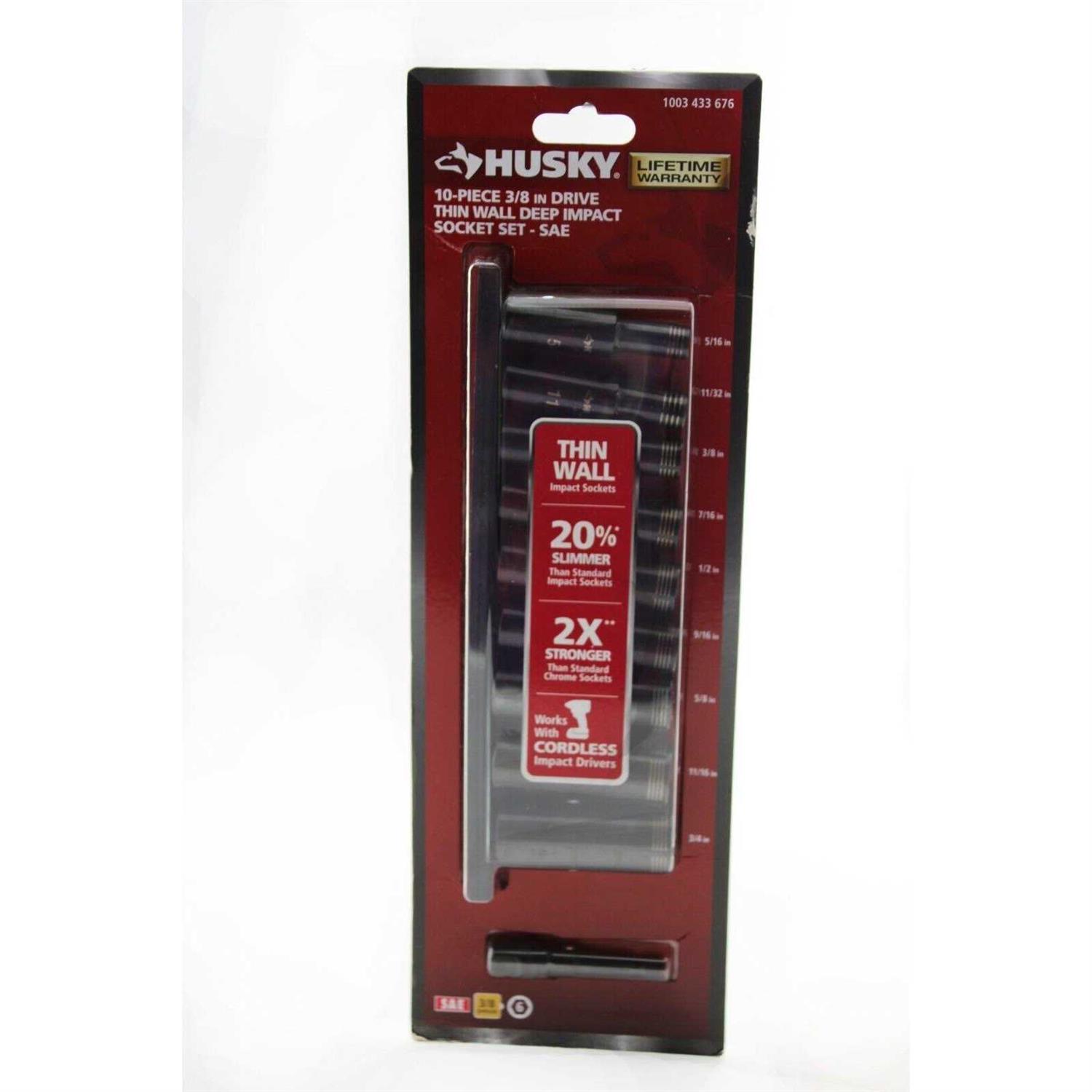 Husky 3/8 in. Drive Thin Wall Deep Impact Socket Set SAE (10-Piece)