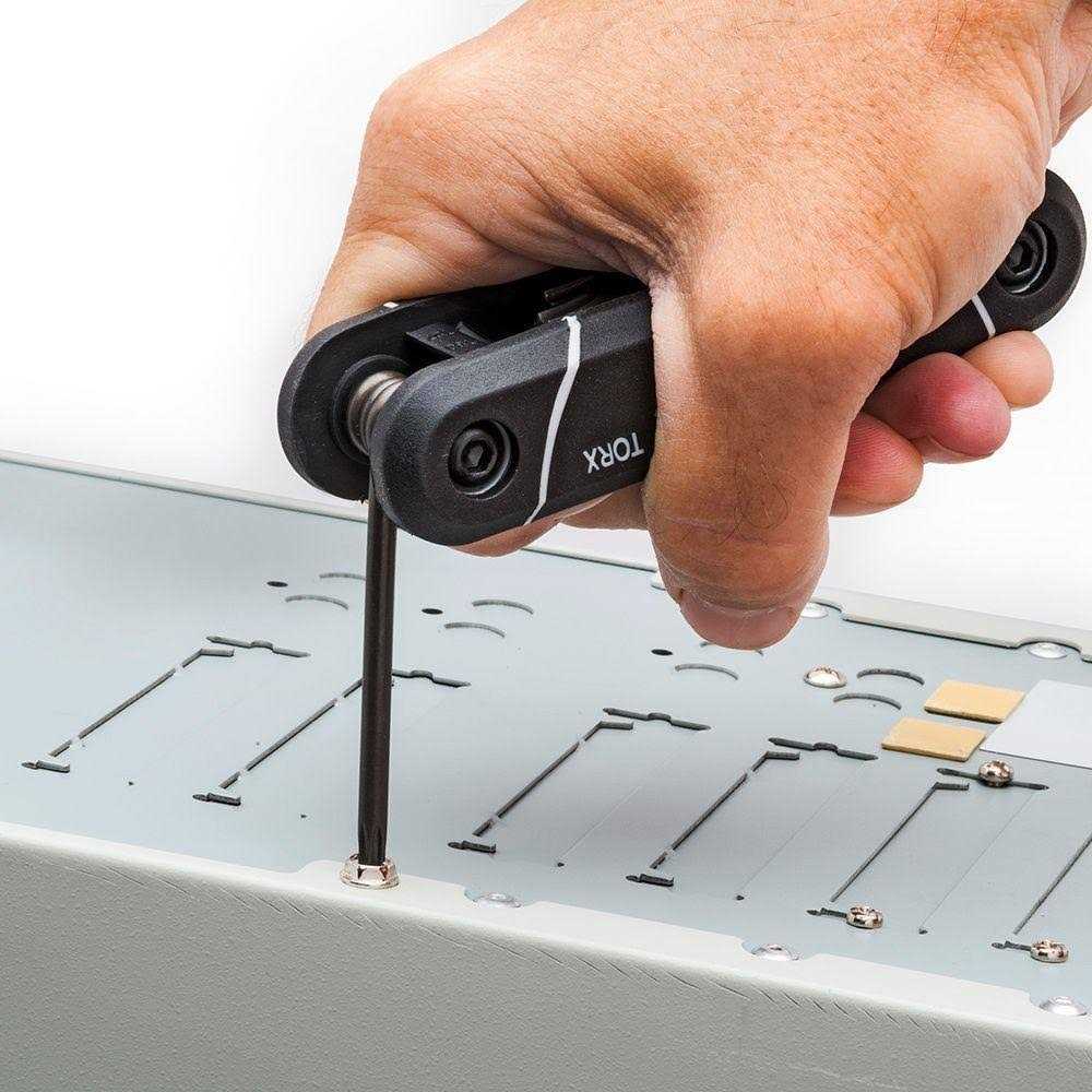The set has a comfortable over molded ergonomic grip. The folding hex keys are contained within the handle for better organization.