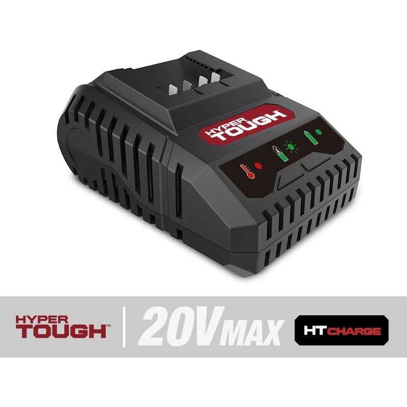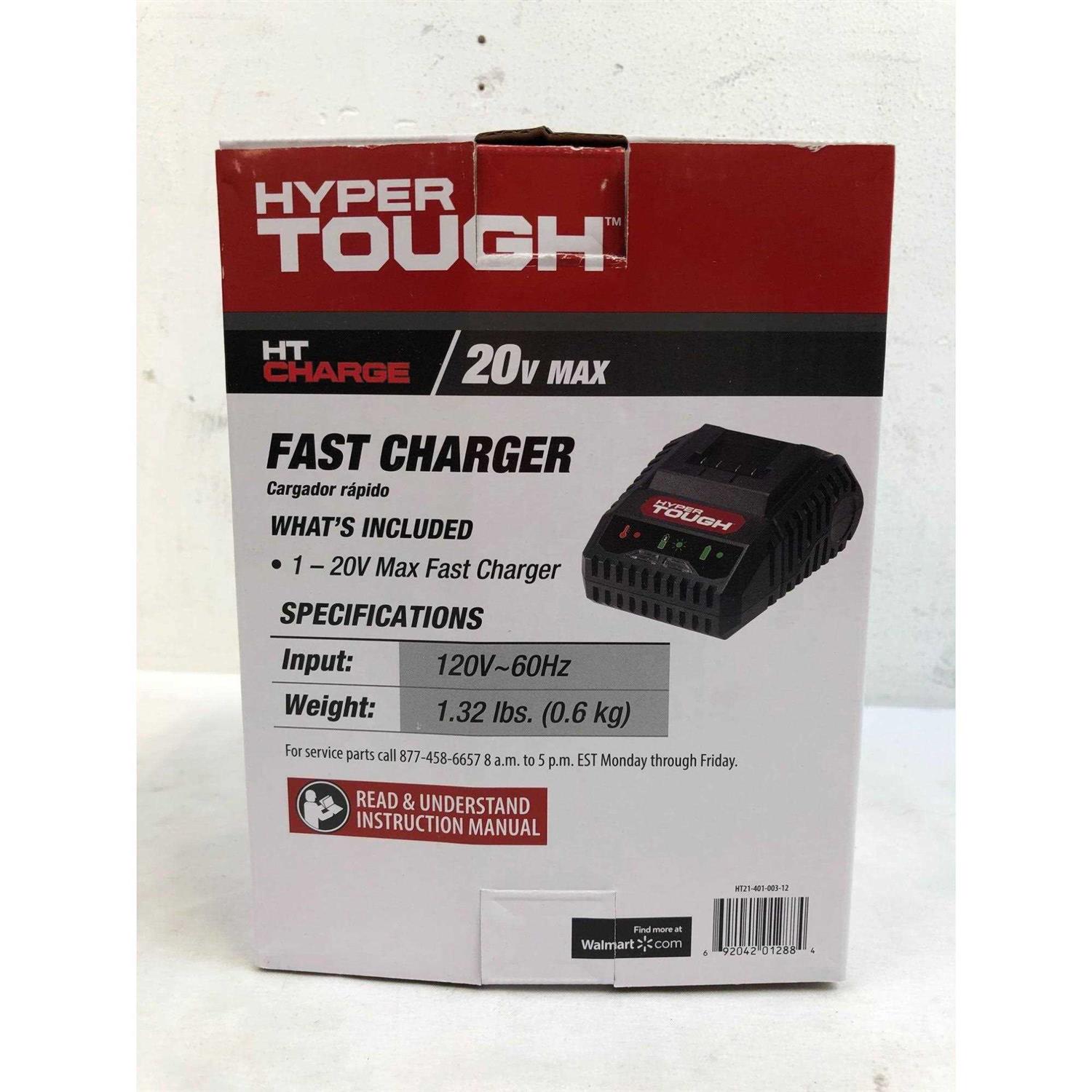 The Hyper Tough 20V Max Lithium-Ion Fast Charger is ideal for quickly charging your Hyper Tough 20V Max batteries. It is compatible with all Hyper Tough 20V Max lithium-ion batteries. The HT 20V Max new Lithium-Ion Fast Charger recharges 20V Max 2.0Ah Lithium-ion batteries in approximately 1 hour and recharges 20V Max 4.0Ah Lithium-ion batteries in approximately 2 hours, keeping you and your tools going through the length of the job. When you are ready to make repairs or tackle those home improvement projects, Hyper Tough is ready. This charger is sold as a single charger and does not include a battery or a tool.
