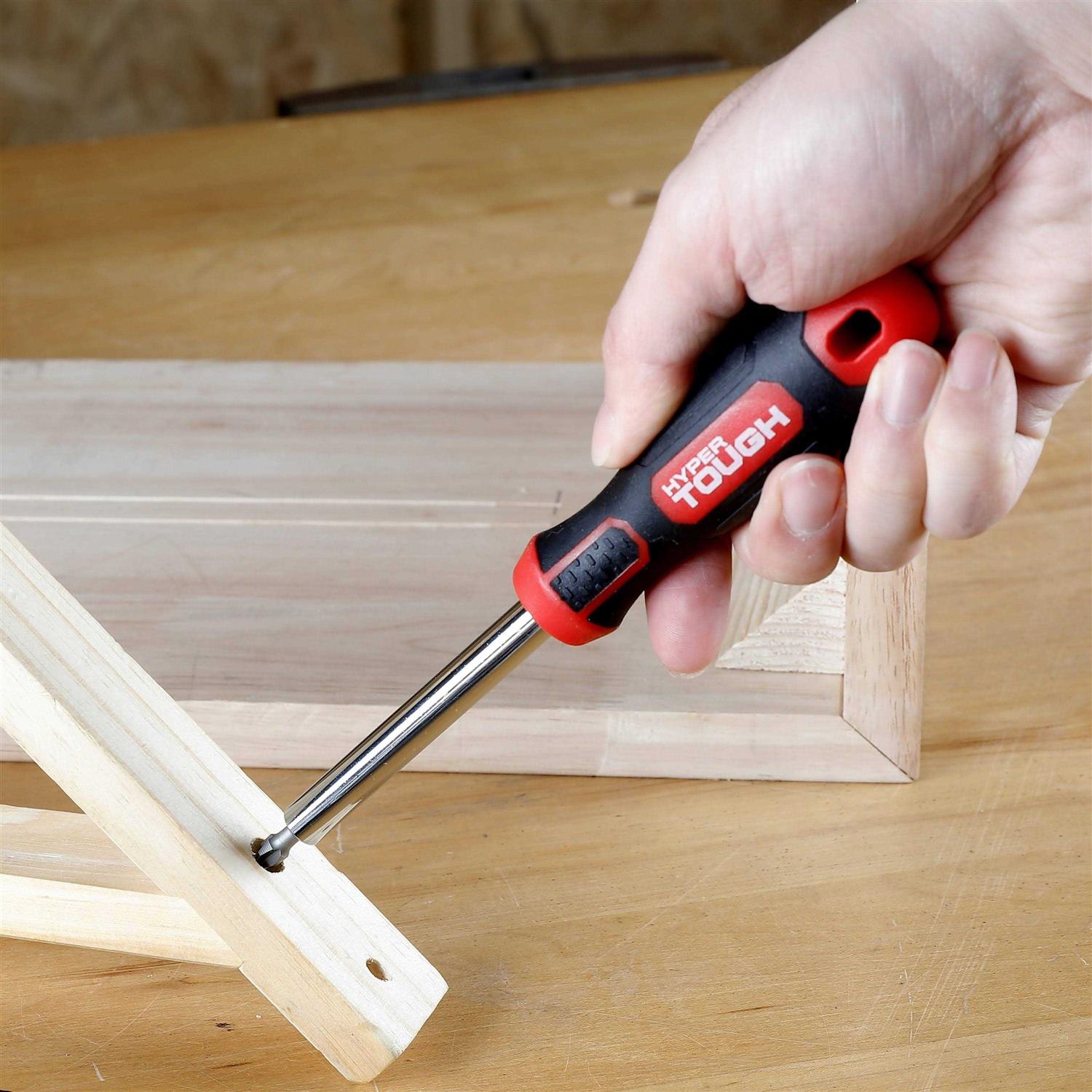 It is perfectly sized to slip into a kitchen drawer or bedroom nightstand to be out of sight. This kit has all the essential tools for most quick fixes, repairs, or DIY projects around the house. The zip-up storage case helps to keep tools organized and secure. Featuring: one 8 oz hammer, a screwdriver handle, scissors, long nose pliers, 16-ft tape measure, 20 screwdriver bits, magnetic bit holder, and one 9mm snap-off knife. Save your kitchen drawer from clutter and make projects around the house quick with the compact Hyper Tough Kitchen Drawer Tool Kit, grab yours today!