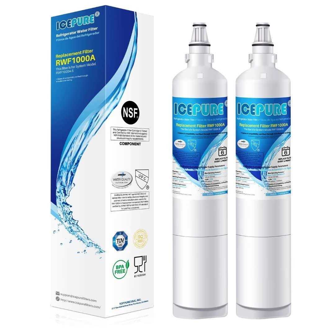 Authoritative Certifications‒ ICEPURE RWF1000A replacement for LG LT600P refrigerator water filter bears major Authoritative Certifications on markets, such as NSF/ANSI 42 & 372 Lead-Free from NSF and IAPMO, European Food Grade Regulations EC-1935/2016, ROHS, REACH, BPA-Free, TUV and Australian Water Mark. For higher filtering levels (NSF/ANSI 401 certified), please search for ASIN:B08R8WSHGP Efficient Filtration Capacity‒ ICEPURE RWF1000A refrigerator water filter replacement for LG 5231JA2006A reduces many substances from your water including 99% of Chlorine, taste, THM, VOCs, Particles and all other major impurities, significantly improving the taste of drinking water to provide pure-tasting water, while retaining minerals beneficial to the human body. Premium Materials‒ BPA-free and food-grade materials. This filter is made from advanced coconut shell carbon and is Certified by Authoritative organizations for Material. The Outer layer is 0.5 Micron, ensuring better filtration. The carbon blocks have been independently tested by a third-party laboratory to remove heavy metals, large sediments, and all other dangerous impurities. Compatible Models‒KENMORE 46-9990(NOT 46-9999), LT600P-B, LT600PC, 5231JA2005A, 5231JA2005A-S, 5231JA2006, 5231JA2006B-S, 5231JA2006E, 5231JA2006F, 5231JA2006F-S, 5231JA2006H, 5231JJ2001C, CLS30320001, LFX25961AL, LSC27931ST, LRSC26922TT, LFD22860ST, LFX25960ST, LFX25961ST, LFX25961SW, LFX25980ST, LMX25981SB, LRBC22544SB, LRBC22544WW, LRFD25850ST, LRSC26910SW, LRSC26911SW, LRSC26920SB, LRSC26920SW, LRSC26923TT, LRSC26960TT, LRSC26980SB, LSC26945SW, LSC27950SW. Fit Models‒OEM Water drop WD-LT600P, WDS-LT600P, Refresh R-9990, OnePurify RFC1000A, Dista DWF-10, Golden Ice pure RFC1000A, Pure Plus, EXCELPURE EP-LT600P, HDX FML-2, Waterfall Filter WFC2001, PURELINE PL-800, Clear Choice CLCH104, AQUACREST AQF-LT600P, FilterLogic FL-RF03, Waterspecialist WS603A, Mist CWMF046, Maxblue MB-LT600P, ICEPURE PRO PLUS RWF1000AH, Aqua Fresh WF600, Swift Green Filters SGF-LA50, Tier1 RWF1051,SUPCO WF300, NuTruFlo NTF-10,PerfectPure PP1004 fridge cartridge.