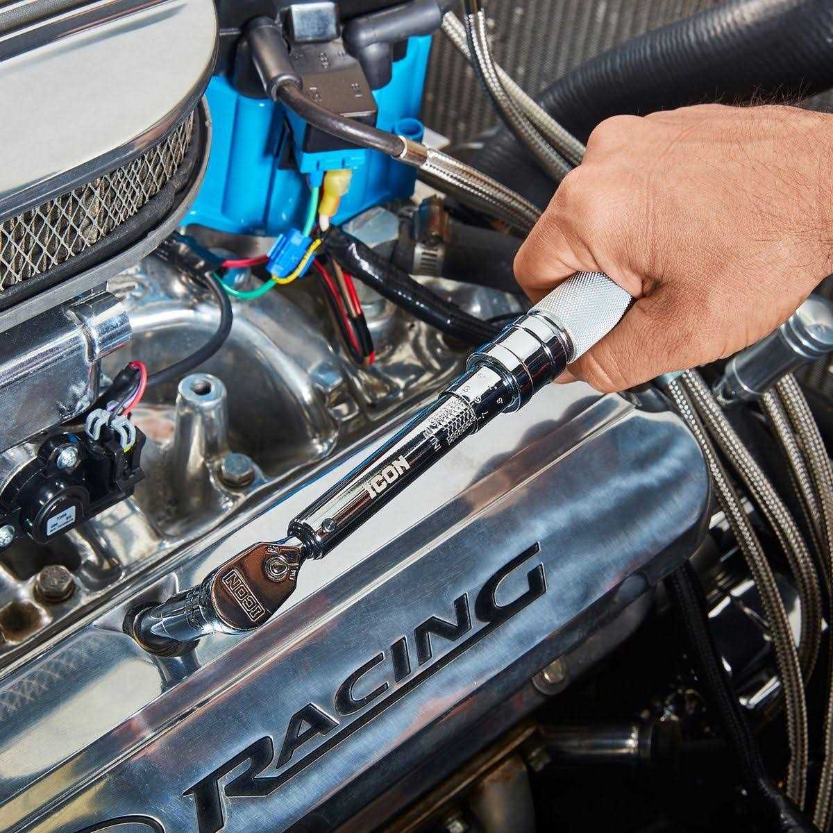 The Icon professional compact click-type torque wrench is fast, accurate and easy to adjust. This high accuracy torque wrench comes with a factory certificate of calibration and can be re-calibrated. Its compact design allows easy clearance into the most cramped work areas. This torque wrench is perfect for cars, motorcycles and small engine repairs. The easily readable scale is roll-marked for permanence and is equipped with a locking collar to prevent accidental changes to torque settings. The mechanism provides a physical impulse and audible click when the correct torque setting is reached.