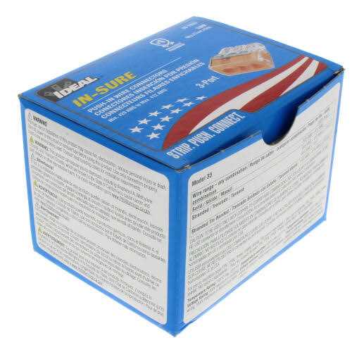 Ideal 30-1033 – In-Sure Push-In 3-Port Wire Connector No-twist connection Low insertion force for fast,easy application Accepts #18 to #12 AWG solid wire Clear shell makes connection easy to inspect UL Listed and CSA Certified Rated to 600V maximum Shell rated to 105 C Pick up any wire connector. Before you even look at the name, you’ll know it’s an IDEAL by its superior comfort and unmatched performance. Industry standards like Wire-Nut, Wing-Nut, Twister and B-CAP are used by electricians everywhere because they’re easy on the hands and they simply make better connections. IDEAL is the undisputed leader in connectors, providing unique termination solutions now and in the future.