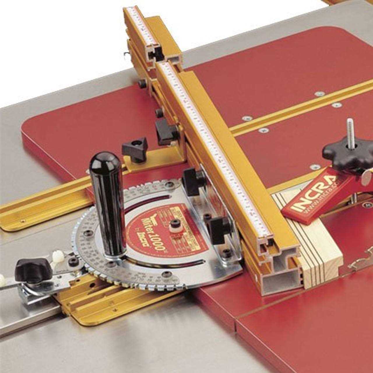 Miter Combo Value Pack Dock & Lock the included INCRA Miter Scale in Secs. Removable t-slot maintaining clips & adjustable miter bar. GlideLOCK Miter Bar – The Miter 1000SE’s 6 development disks adjust both sides of bench for NO side play, anti-friction traveling on all table saws with common miter scale channels. Special Edition Telescoping INCRA-LOCK Fencing. Special Edition 1/10th ° Vernier Arrow. Table size: For adequate assistance, the Miter Express calls for a minimum of 11″ from the side of the blade to either the left or best edges of the saw (sled can be set up on either side of the blade).