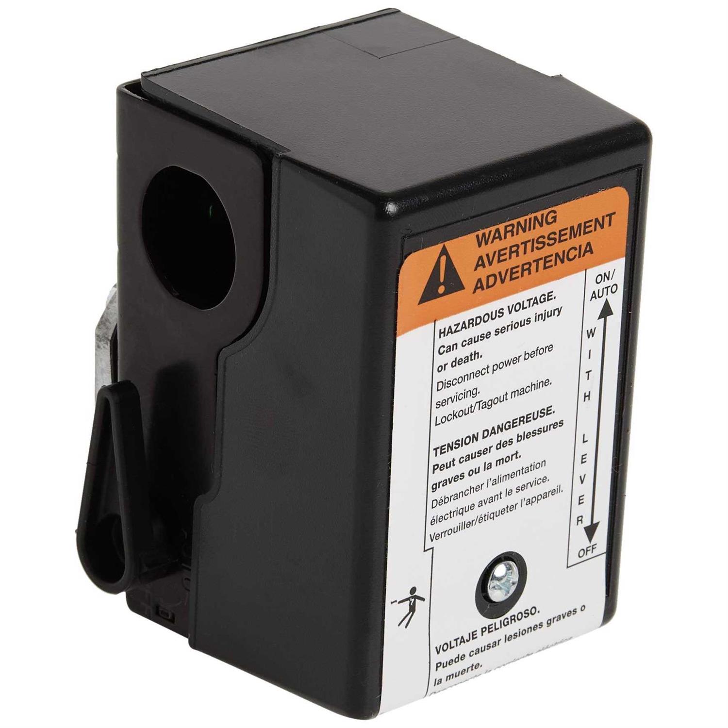 Ingersoll Rand 23474661 Pressure Switch for Single-Stage Compressors Return your air compressor to peak performance with the Ingersoll Rand 23474661 Pressure Switch for single phase power installations. This genuine OEM replacement part is designed for Ingersoll Rand 5 HP reciprocating air compressor models, including models SS3L3, SS4L5 and SS5L5/N5. The pressure switch monitors air pressure in the tank, switching the motor on and off as needed in order to maintain optimal pressure. Featuring a NEMA type 1 indoor enclosure, it has a built-in unloader valve and is rated for applications at 100 PSIG cut-in and 135 PSIG cut-out. Keeps Air Pressure Consistent and Reliable The pressure switch for your Ingersoll Rand air compressor measures the pressure inside your air tank and helps the machine maintain proper pressure levels as you work. When the pressure switch wears down or becomes faulty due to amp fluctuation, the operating pressure band can be affected leading to short cycling and sub-optimal performance. This Ingersoll Rand replacement pressure switch helps address these issues.