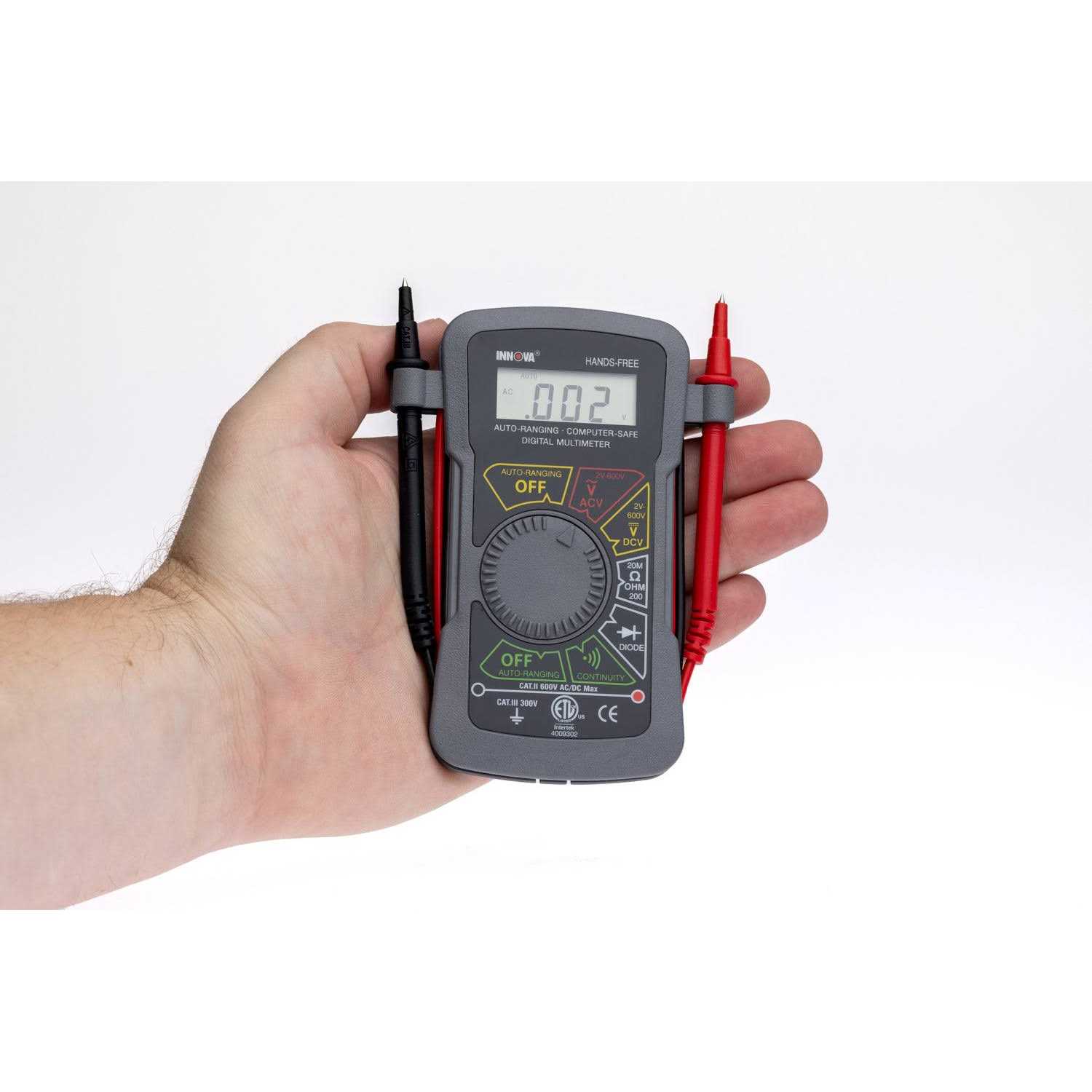 Innova 3306 10 MegOhm Hands-Free Digital Multimeter is designed to detect the cause for electrical and electronic failures in vehicles and household appliances. It is U/L listed for safety as well as high quality and features a 10 MegOhm circuitry which prevents damage to sensitive electronics. This mulitmeter is highly reliable for testing basic electrical outlets, wiring and batteries.