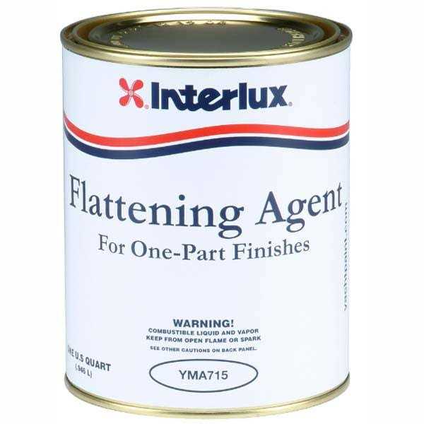 The Interlux Flattening Agent gives you the freedom to create a variety of gloss, satin or matte effect finishes. It can be mixed with Interlux 1-Part Finishes (Brightside Polyurethane and Yacht enamels) and varnishes (Schooner Gold, Schooner, and Original) to produce the finish you desire. The 1-part finish Flattening Agent may be used for interior or exterior use. Test applications are recommended before proceeding. The actual levels of Flattening Agent for 1-Part Finishes required may vary somewhat from color to color. It should also be noted that the exact gloss level achieved will vary slightly with film build applied. If sprayed slightly dry and with thin coats, the gloss will be less than for more heavily applied wet coats. Stir individual products prior to mixing. Pour required quantities of Flattening Agent YMA715 and finish into a separate container and stir well before use.