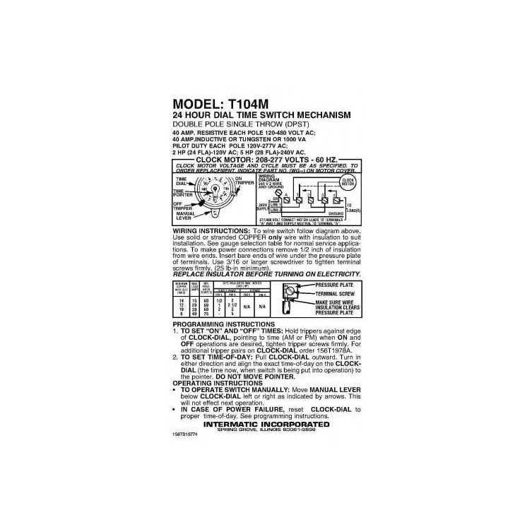 Dial timer mechanism, time period 24 hour, contact form dpst, voltage rating 250 volts, for timer numbers 2e351, 2e259 and 4e025.