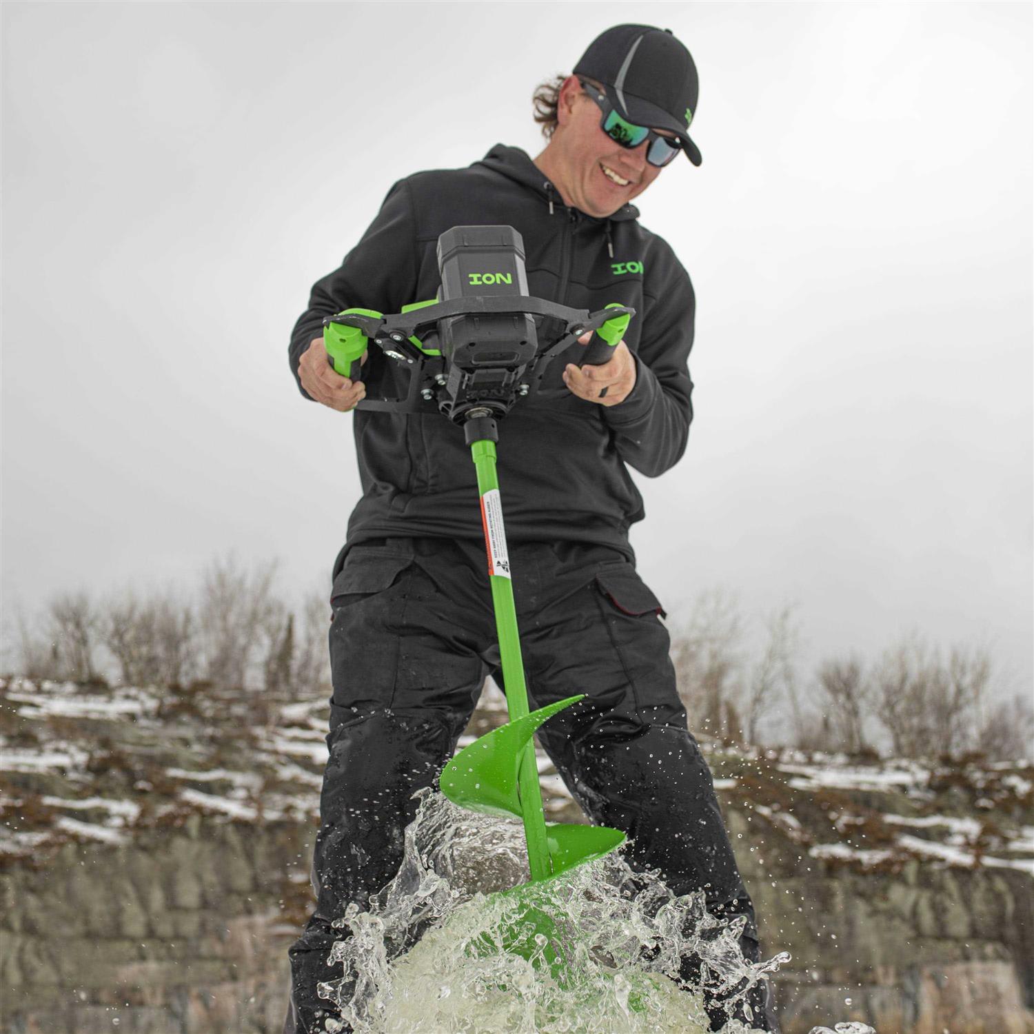 The Alpha Series marks the 3rd generation of ION electric ice augers, re-imagined from the ground up to re-define high-performance yet again. The 10-inch ION Alpha utilizes a specially designed Turbo high-speed cutting system, providing a smooth and efficient cut through up to 1200 inches of ice on a single charge. It boasts a category-leading cutting speed of 2.2 inches of ice per second, which is actually faster than most competitor 8-inch models. Speed, power, and longevityall under 22 lbs.