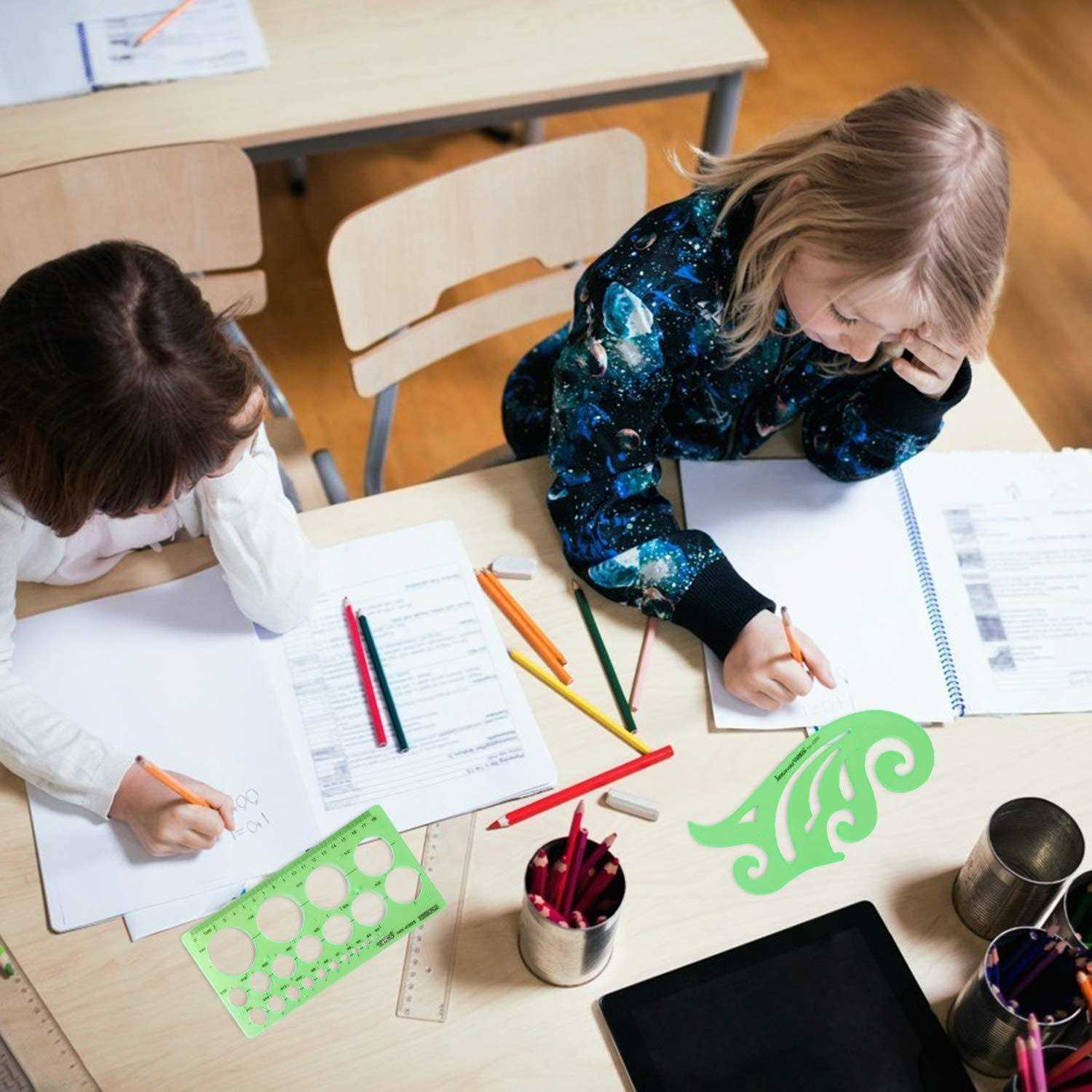 Color: **clear green** This template has different geometric patterns for your various choices, such as hexagon, circle, arc, oval and triangular.with precise scale on the edges, the best choice for drawing The edge of templates are designed with radian, which made a protection for your hands, please take it easy to use **Specifications:** Drawings templates Quantity: 11 pieces Material: plastic Length: from 17.8 to 25 cm Width: from 9.4 to 14.7 cm Measurement: adopt metric system, use centimeter as scale unit **Lifetime Assured:** ipekar provides a lifetime assured on our products. You will have full refund or return as you wish during the assured periods **Package includes:** 1 * Curve template 1 * Network technique template 1 * Geometric drawing template 1 * Mechanical template 1 * Nut template 1 * Building template 1 * Mathematics learning template 1 * Circular template 1 * Multifunctional drawing template 1 * Ellipse template 1 * Orthodrome template 1 * Poly zipper envelopes