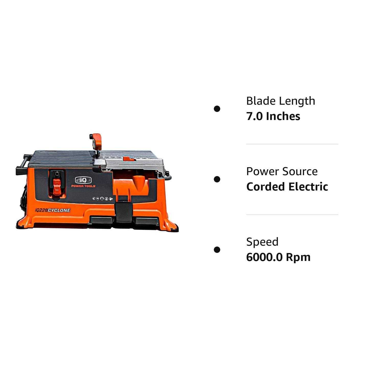IQ Power Tools iQ228CYCLONE 7in. Dry Cut Bench/Tabletop Tile Saw with Integrated Dust Control and New Tru-Cut System