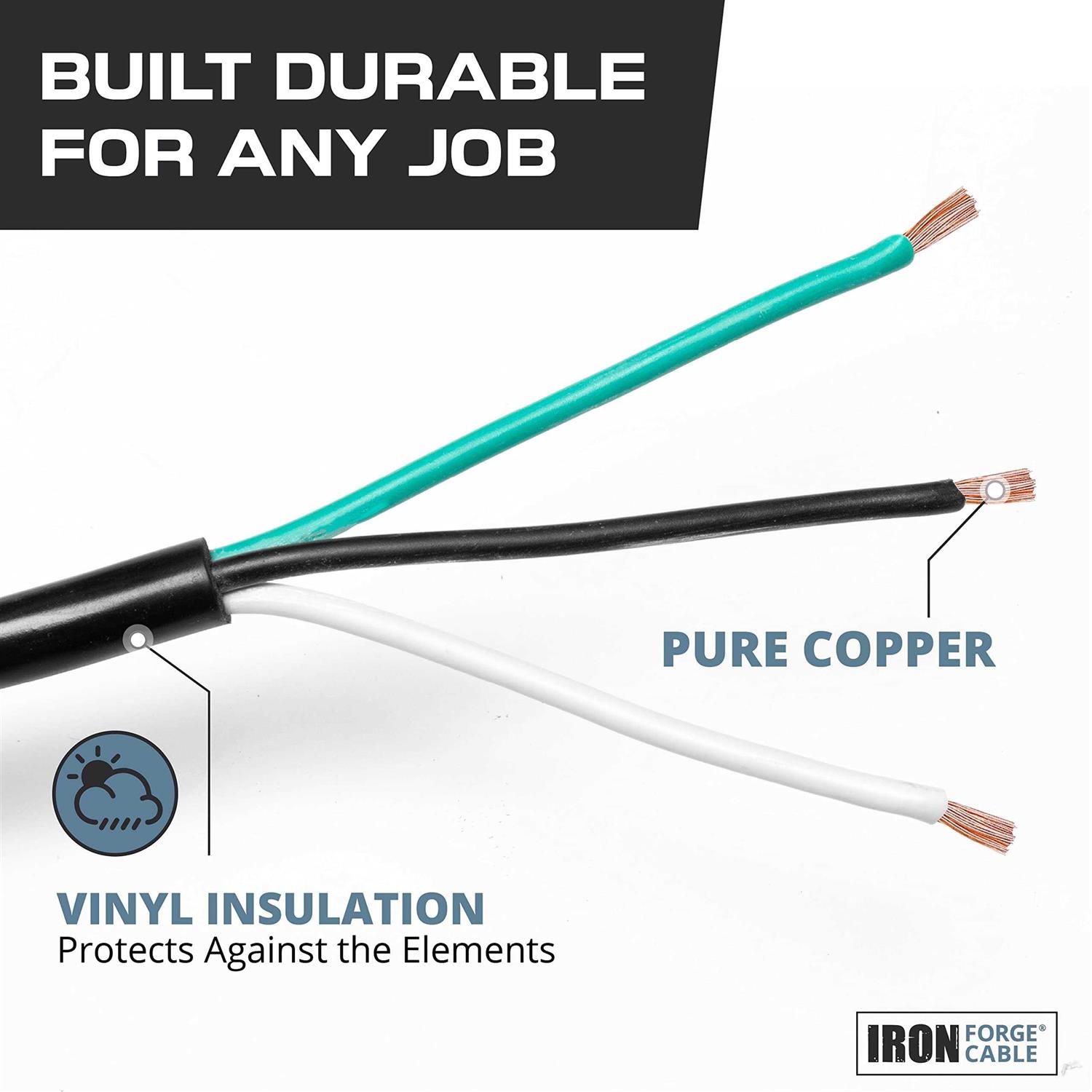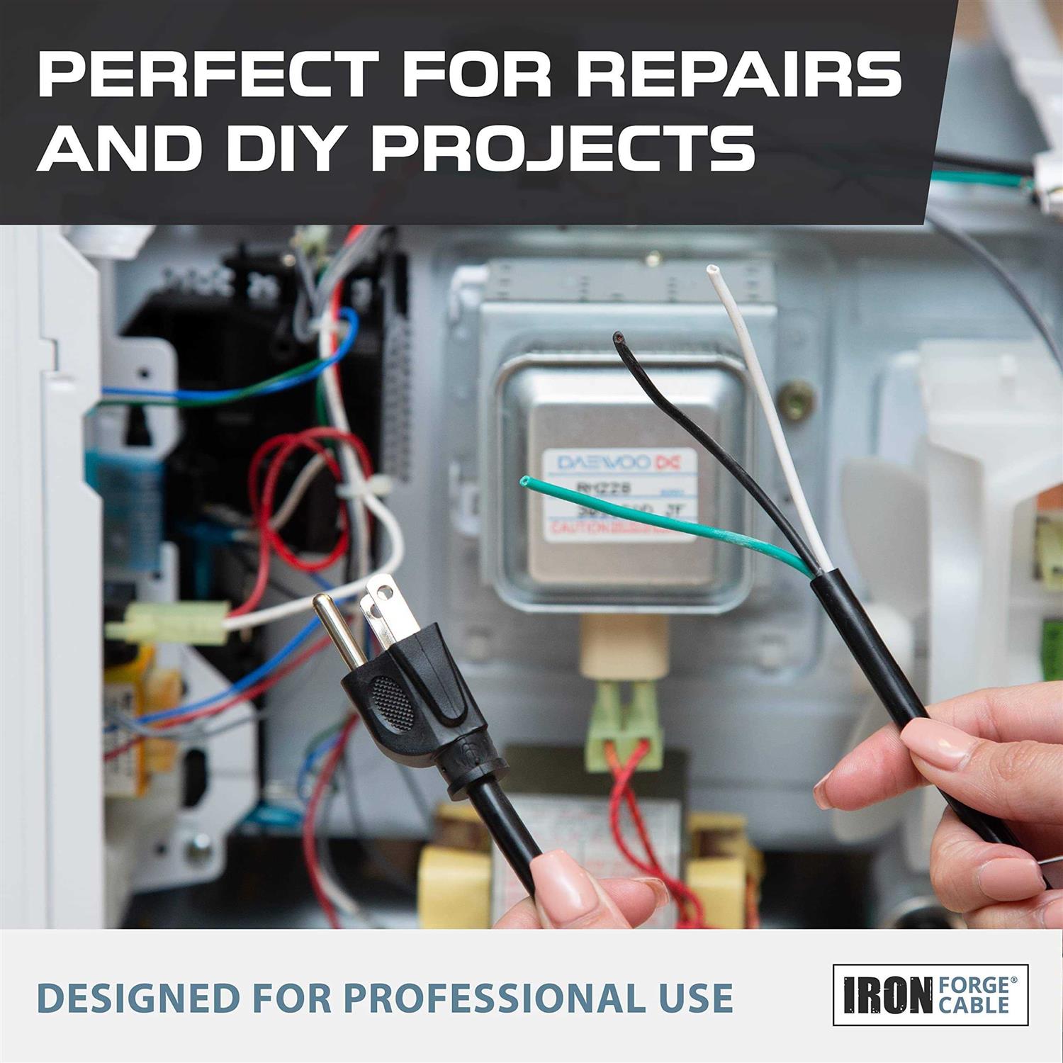 Iron Forge Cable 12 AWG Replacement Power Cord with Open End – 15 ft Black Extension Cable, 12/3 SJT, NEMA 5-15P