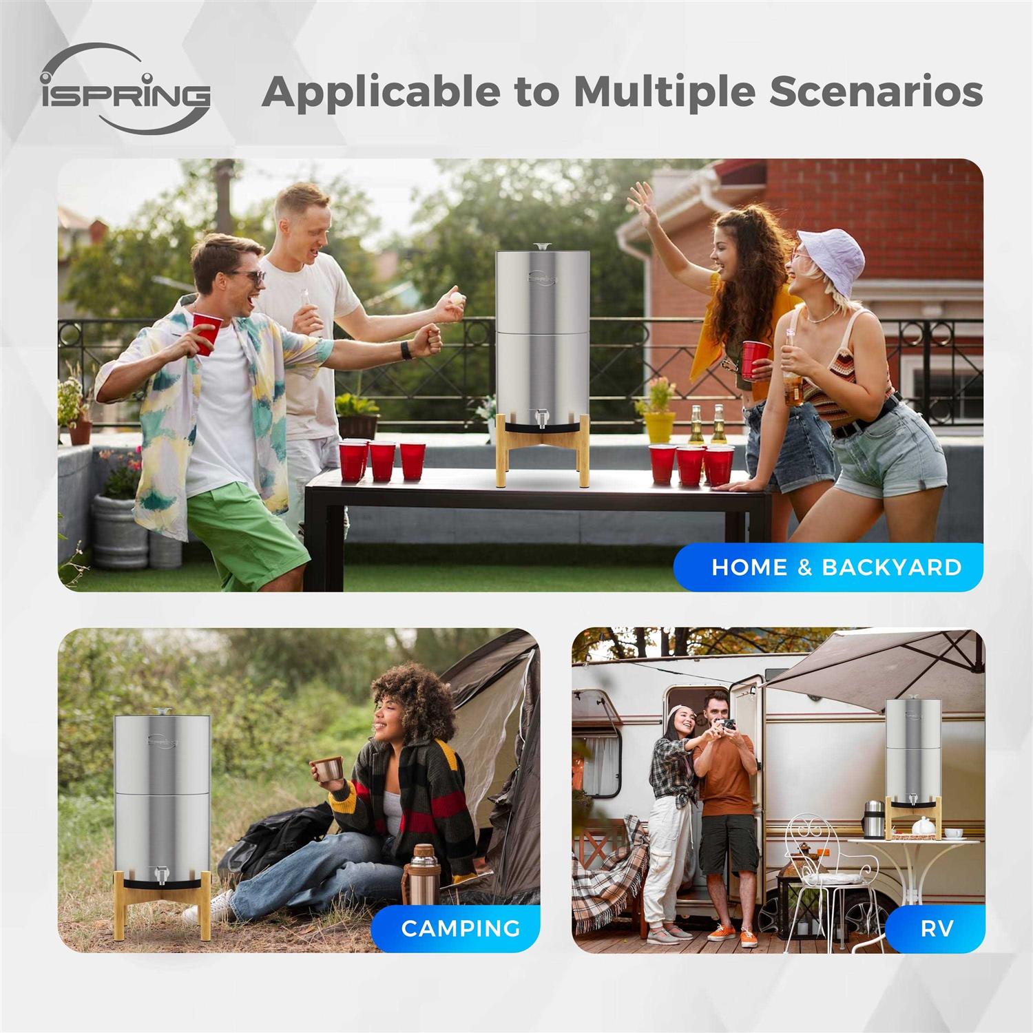 The ispring DGF2-NW gravity drinking water filtration system provides tasty water for the whole family and removes suspended matter, turbidity, parasites, pathogenic bacteria, chlorine and bad taste from your drinking water. In situations where there is no reliable supply of pressurized water, whether at home, in a campsite or in a holiday cottage. Allows clean, healthy and tasty water from almost any freshwater source. Comes with 2 heavy metal removal water filter candles. Ideal for rented accommodation, camping and preparations. No electricity needed. Easy to install and use. Easy to maintain. Totally reliable. All fixings included. iSpring Système de filtration d’eau par gravité avec 2 éléments filtrants, eau potable rafraîchissante à la maison, camping, camping-car, hors réseau électrique, en cas d’urgence (capacité de 12 l)