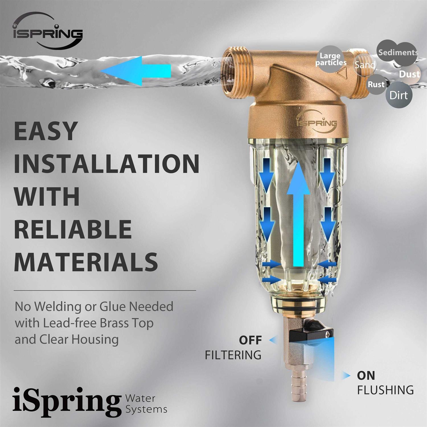 The iSpring spin down sediment filter is ideal for filtering out course sediment larger than 50 micron. The stainless steel screen makes the flushing and cleaning process very simple, allowing flushing of the contaminants through the bottom of the filter when the cartridge begins to get clogged. This allows the stainless steel filter cartridge to be used over and over again without needing to be replaced. The 1 inch outlet MNPT fitting provides a maximum 20 gpm flow rate, and this filter also features 3/4 inch NPT threads on the inlet and outlet. The housing is manufactured with FDA approved grade materials. *Option with Siliphos-Includes Siliphos to help prevent scale and stop corrosion, greatly extending the life of your plumbing fixtures. It is recommended that the filter to be replaced every 3-6 months to prevent scale from building up. Make The Right Choice Filtration guideline The WSP spin down sediment filter comes with a variety of options in micro size. Smaller microns allow less through, but to get most life and efficiency out of your filters it’s important to only go as small as you need. Differences in water quality and your water pressure affect the performance of the WSP.