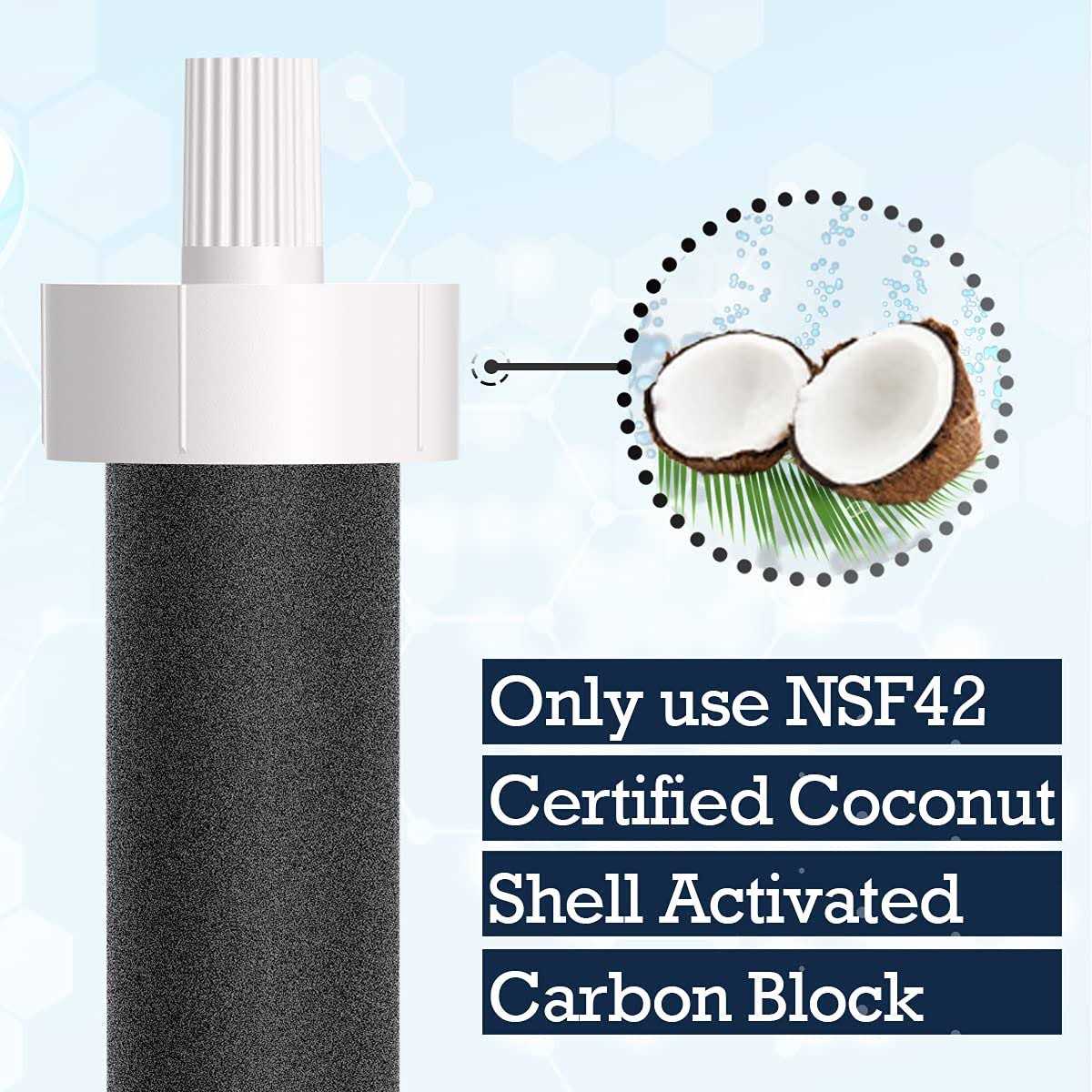 Our premium coconut carbon block filter can effectively reduce chlorine, Lead, Benzene, Mercury, odor, sand, rust, sediment. Interchangeable with Brita BB06, 060258363241, and most Hard Sided Water Bottle and New Brita Sport Soft Sided Water Bottles. This filter is not sourced by or sponsored by Brita. Interchangeable with Brita BB06, 060258363241, and most Hard Sided Water Bottle and New Brita Sport Soft Sided Water Bottles. This filter is not sourced by or sponsored by Brita.”