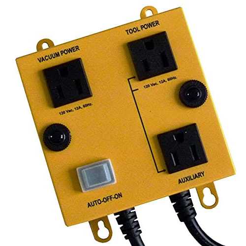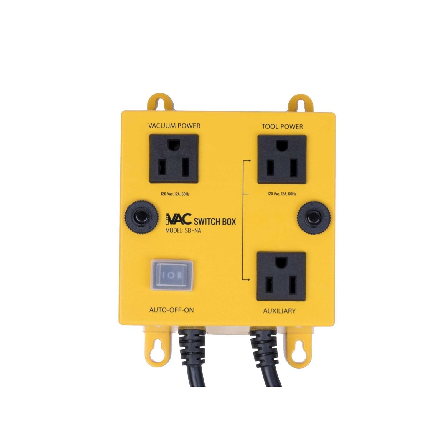 The Intelligent Vacuum Switch eliminates the distraction of turning on and off a dust collection system while you are operating potentially dangerous power tools. Received ETL safety approval. Three modes of operation: Auto, Off, On and Turn-On delay avoids the two power surges occurring at the same time Turn-Off delay clears work area of remaining debris after tool has stopped. Two input power cords permit operation from two separately protected circuits when the combined load from tool and vacuum exceed 15 Amps. Both power cords are individually protected with 15 Amp circuit breakers. Compact and lightweight, switch mounts to the wall.