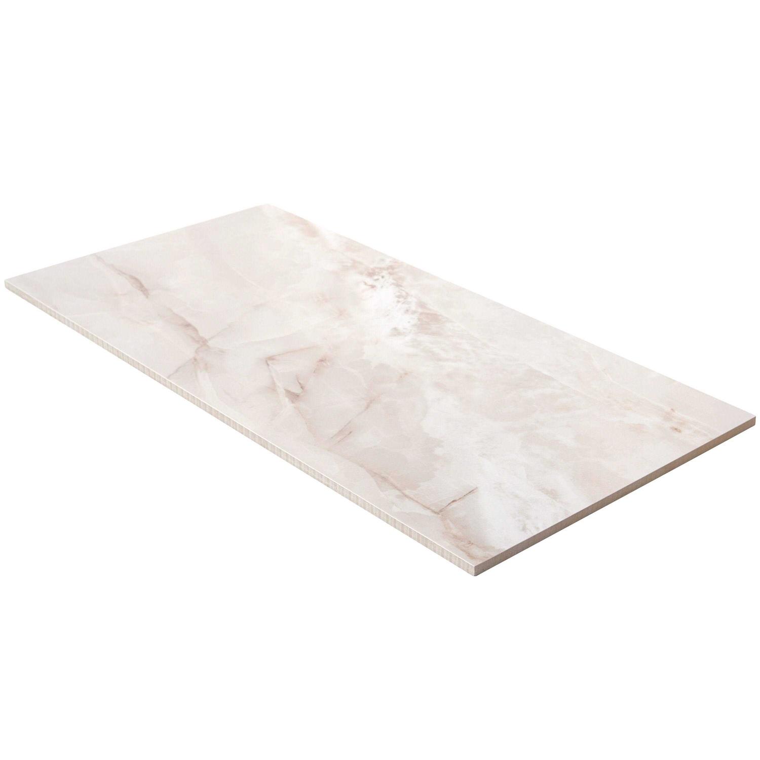 Introduce a lavish touch to your space without the price tag. The Everyday Onyx is a 12 in. x 24 in. porcelain tile that captures the beauty of real stone with the durability of porcelain. The white background and tan/beige veining gives the tile a sense of movement and creates an atmosphere of class. Use in your bathroom or kitchen to give your space an undeniably strong look.