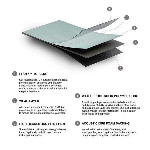 - 20 mil wear layer, concrete look click lock luxury vinyl tile.