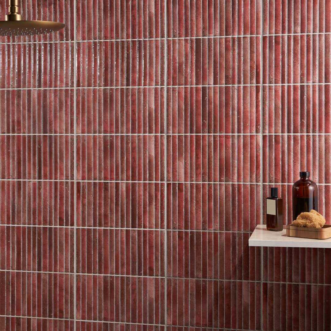 The Mawr Collection feautures an undulating fluted surface, that provides movement as well as dimension. The earthy, red body ceramic tile surprises and delights with its glossy finish and ribbon pattern. This elongated subway tile is available in five warm colorways.