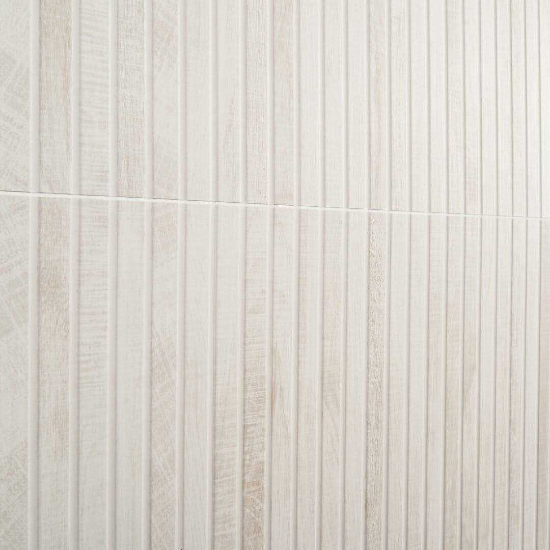 With a beaded body, the Montgomery ribbon maple porcelain tile is a unique 3-dimensional, wood look that will add a distinctive touch to a design. This matte, tile mimics real maple wood with the appearance of a slight, grainy texture and pale color. Use on walls or floors, indoors or out.