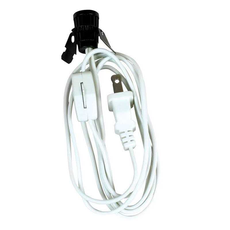 Strong and durable 18 gauge construction Clip-in candelabra base socket Available in white Lamp Cord is manufactured with a strong and durable, 18 gauge construction guaranteeing long lasting use. Equipped with a clip-in candelabra base socket, on/off switch and polarized plug. Product is available in white and measures 6.