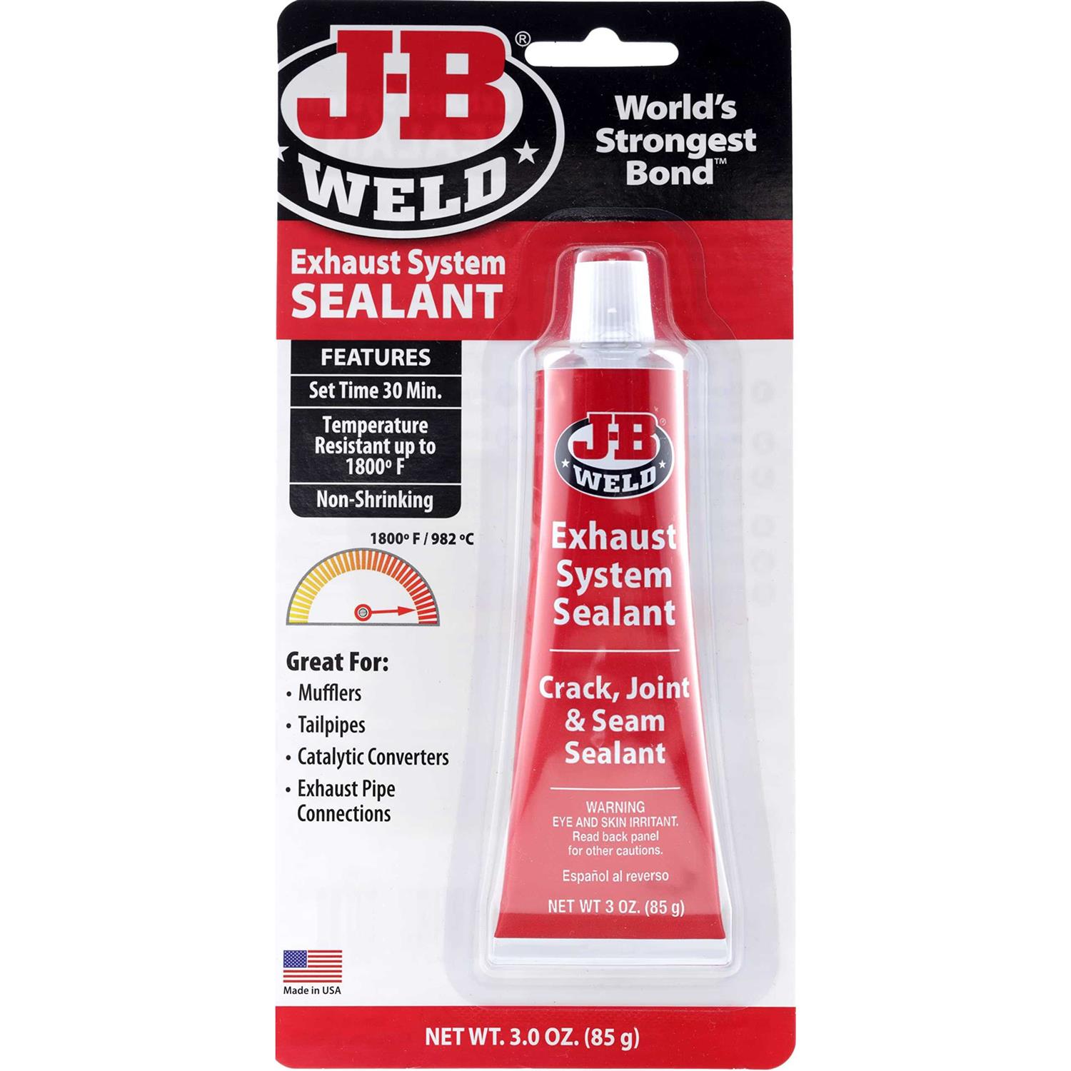 J-B Weld Exhaust System Sealant is a heat resistant paste that is used to seal gaps, smooth seams or seal pipe connections within an exhaust system reassembly or repair. The paste is resistant to temperatures of up to 850°F with negligible, if any shrinkage.