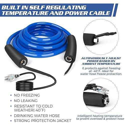 Water Hoses & Fittings by JDZKOMKE. Details:JDZKOMKE Heated Water Hose has undergone many technical upgrades.It will self adjust the heating temperature and power in different environmental temperatures, which plays a very important role in saving energy. JDZKOMKE heated water hoses can be used down to -40 degree F (-40 degree C), allowing you to live like spring in the cold winter. As the water in the hose gets warmer, the self regulating heater will produce less heat and when the temperature gets colder will produce more heat keeping your water flowing. The JDZKOMKE heated hose is a drinking water safe hose, that plugs into a standard 120 volt socket, to keep hose from freezing. Can be used in RV、family, garden, camping, travel, etc.any watering applications in below freezing temperatures.
