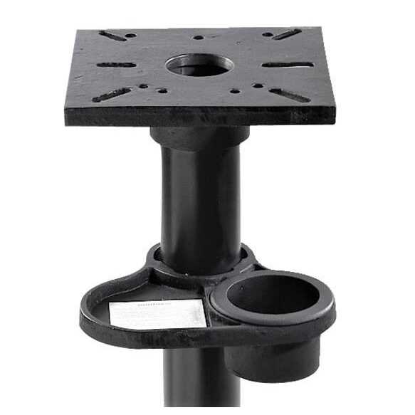 The JET Bench Grinder Floor Pedestal is a great way to mount your bench grinder at a comfortable working height on a sturdy platform. The top measures 10 x 11 inches and its heavy cast iron construction provides years of durability in demanding environments. It also has a coolant tank & tool tray on an adjustable platform for your convenience.