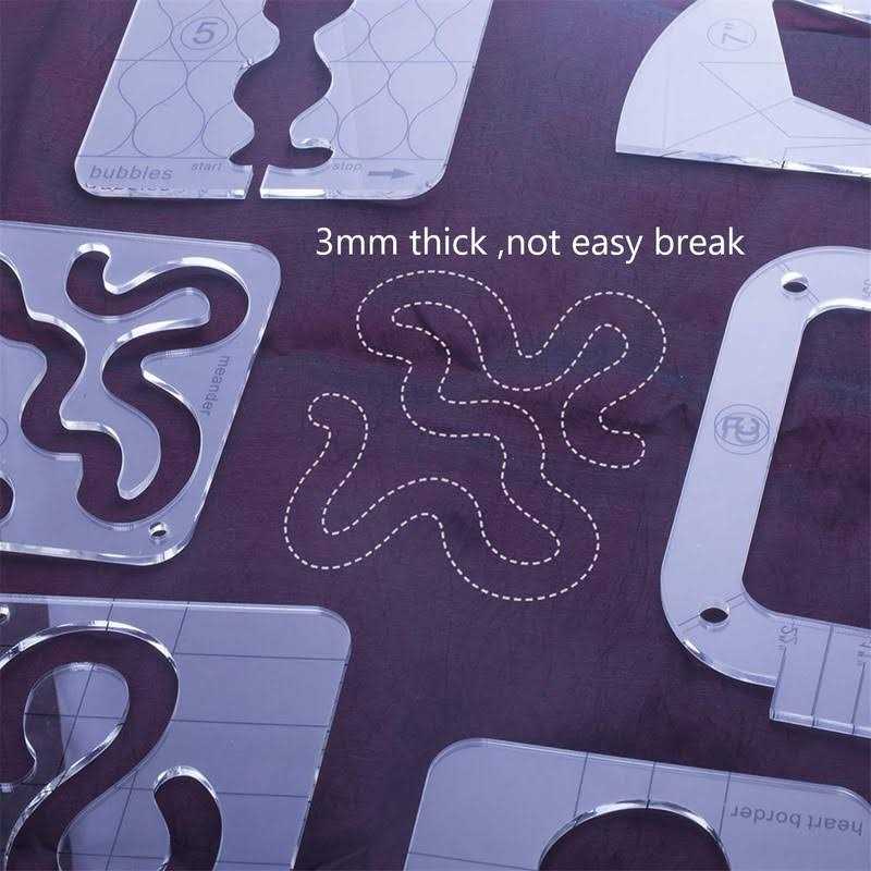 These flexible motion quilting templates and kits are good for designing different kinds of unique patterns, which can be considerate gift for your friends, parents, grandparents or sewing projects lovers in your life, which is sure to win their preference. Easy to use: Just use the correct installed sewing machine ruler foot, follow the path inside the template. Spin the ruler 180 degrees after reaching the end of the open path. This ruler border sampler template set for sewing machine can create beautiful borders to compliment your quilt designs. Time for design: All types of sewing machine domestic templates help you to quilt different patterns, a good helper for household sewing machines. Package includes: 11 x Series Free-Motion Quilting Templates 1* Stainless Steel Low Shank Ruler Foot Free Motion Darning Foot 48pcs Non-Slip Grips for Quilt Templates Note: Please allow slight size error due to manual measurement. The template ruler is covered with opaque protective film on both sides. When using for the first time, please gently tear off the protective film on the surface.