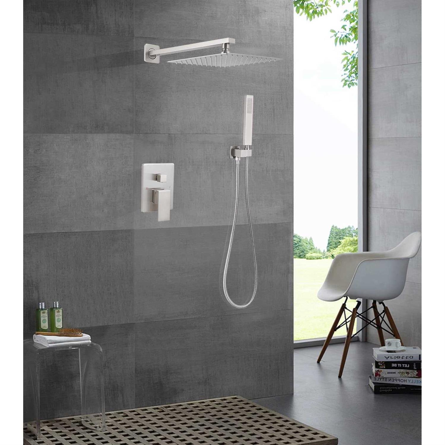 JingGang Brushed Nickel Shower System 10 inch Bathroom Luxury Rain Mixer Shower Combo Set Wall Mounted Rainfall Shower Head A