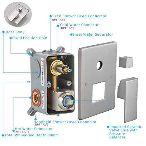 304 stainless steel) , handheld shower head? Brass) , 15.7 inches shower arm? Brass) , 1.5M shower hose? 304 stainless steel) , shower holder? Brass) , shower mixer control valve? Brass) PRESSURE BALANCE VALVE: CUPC certified pressure balance valve’s cartridge monitor water pressure balance, maintaining consistent water temperature, helping to protect you from being scalded by sudden changes in hot or cold water pressure. AIR PRESSURE TECHNOLOGY: Inject the air into rain Shower head to mix water with air, and the water pressure up to 2.5GPM instantly, simulates the natural raining to provide you with natural contact of water experience, giving you a pleasant shower, easy to clean and maintain. STANDARD U.S. THREADS: Our connectors are standard 1/2 NPT tapered threads, compatible with most existing shower systems, no adapter required. All parts are separated by EPE cushioning (pearl cotton) package to prevent damage in transit.