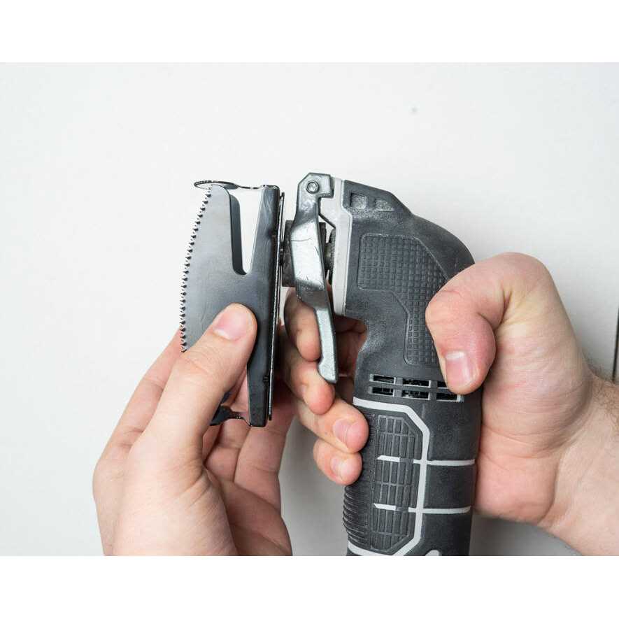 The EBC-400 Cuts drywall in seconds making installation of plastic, metal or low voltage existing construction electrical boxes fast and easy. Can be used with most brands of oscillating multi-tool power tools. Made from stamped steel, tool cuts a hole 2-3/8” x 3¾”.