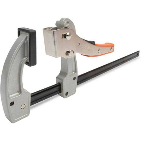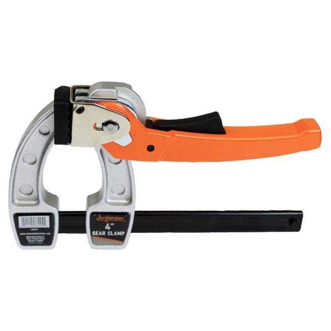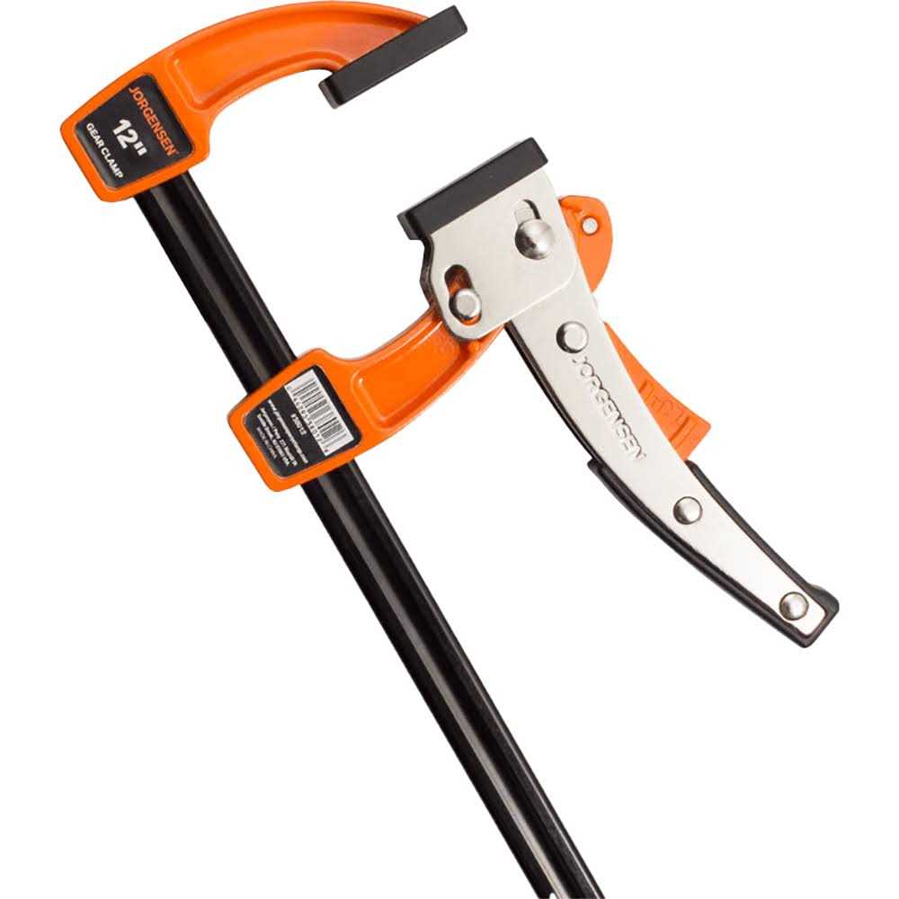 JORGENSEN 38012 Gear Clamp has a distinctive “power bar” design which allows for rapid action clamping. With a quick push on the “power bar” the gear clamp develops up to 600 lbs. of clamping force. The handy quick-release button releases the clamp instantly. The lightweight and rapid action is ideal for projects which require constant use of clamping and unclamping. Opening capacity is 12 inches. Throat depth is 3 inches and steel bar size is 1/4″ X 3/4″. The Chicago based Pony Tools which was established in 1903 is the manufacturer of all JORGENSEN Bar Clamps.