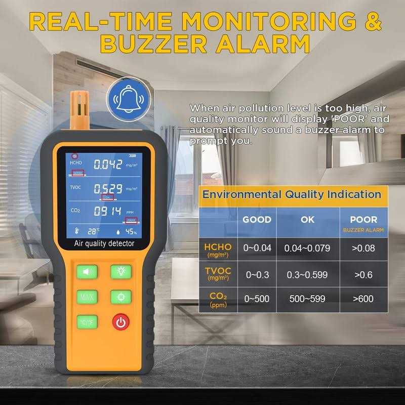 KAISAL Air Quality Monitor High Sensitivity CO2 Monitor Formaldehyde Detector Tvoc/temp/humidity Air Quality Monitor Indoor with Buzzer Promptmax Valu