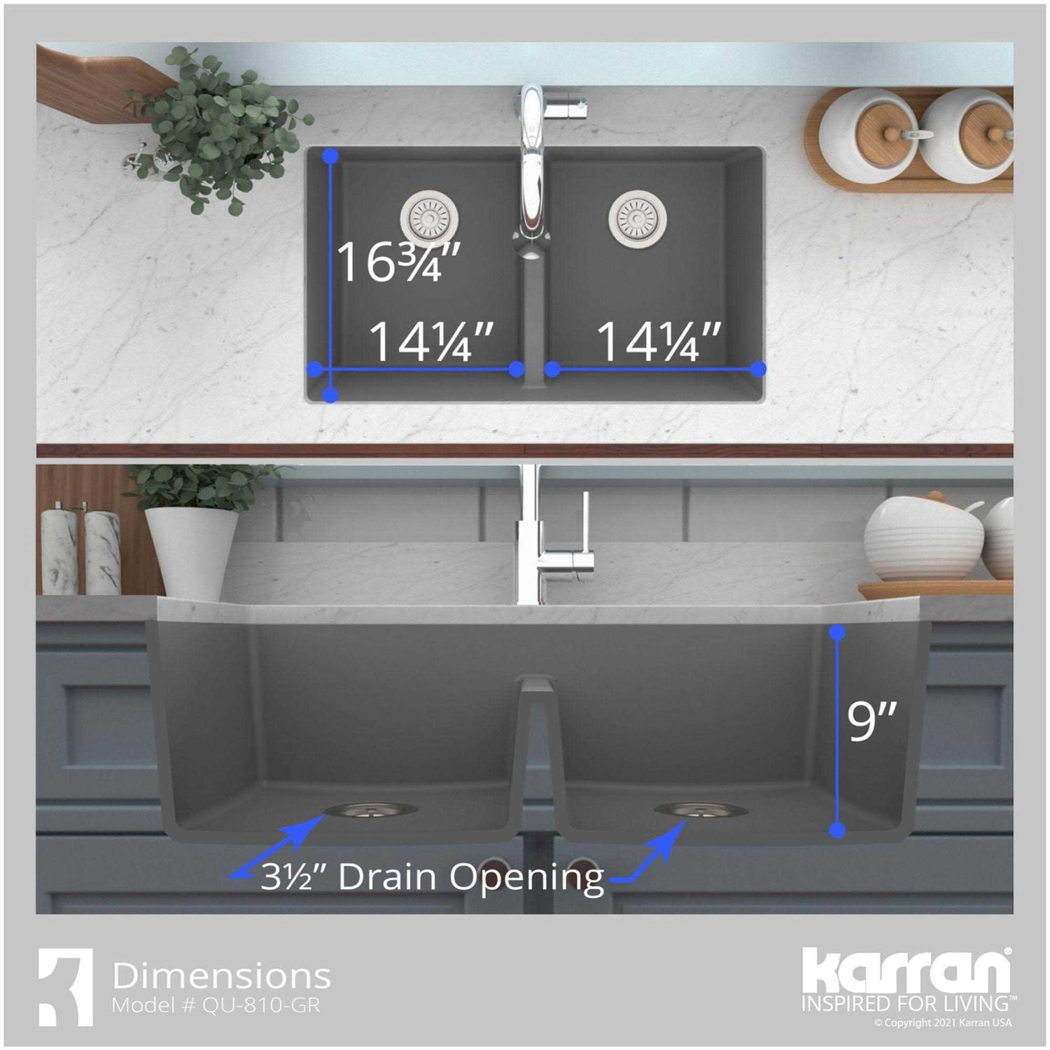 Karran 32 Undermount Double Equal Bowl Quartz Kitchen Sink