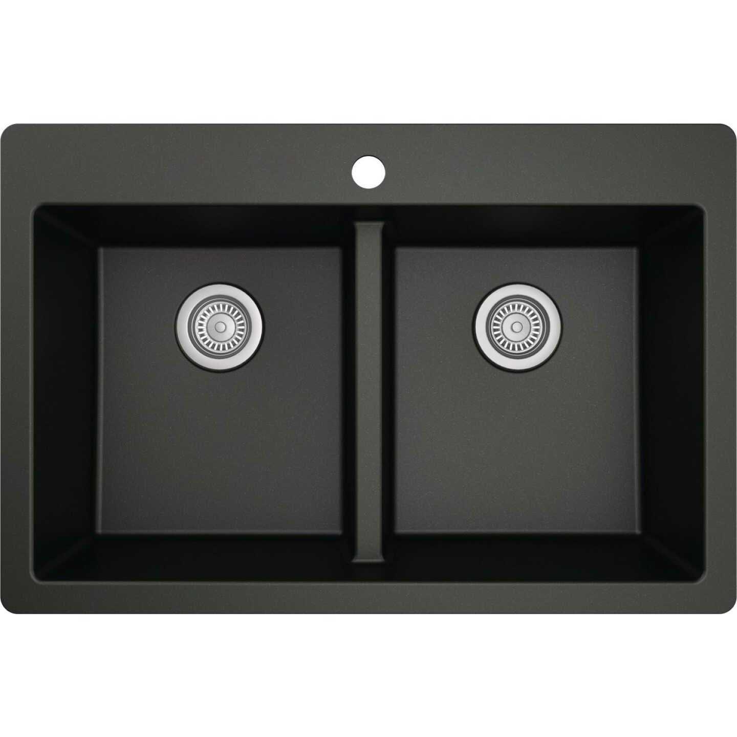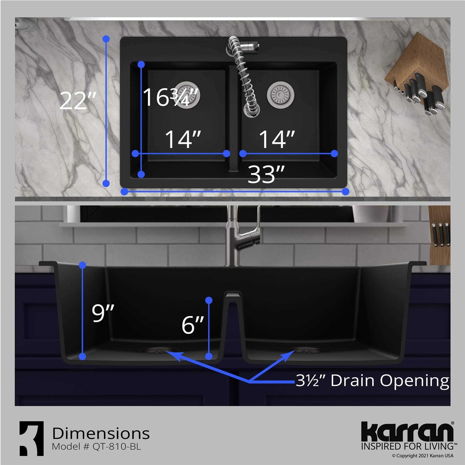 Karran QT-810 33″ Top Mount Double Equal Bowl Quartz Kitchen Sink in Black