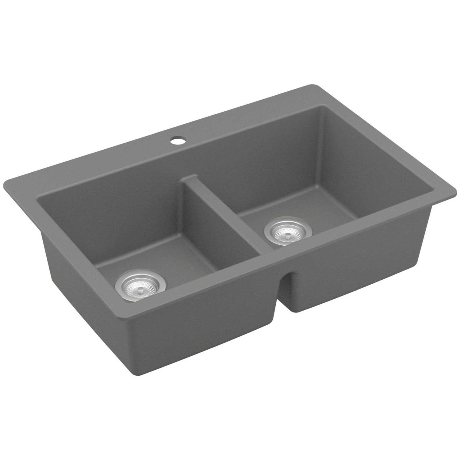 Karran QT-810 33″ Top Mount Double Equal Bowl Quartz Kitchen Sink in Grey