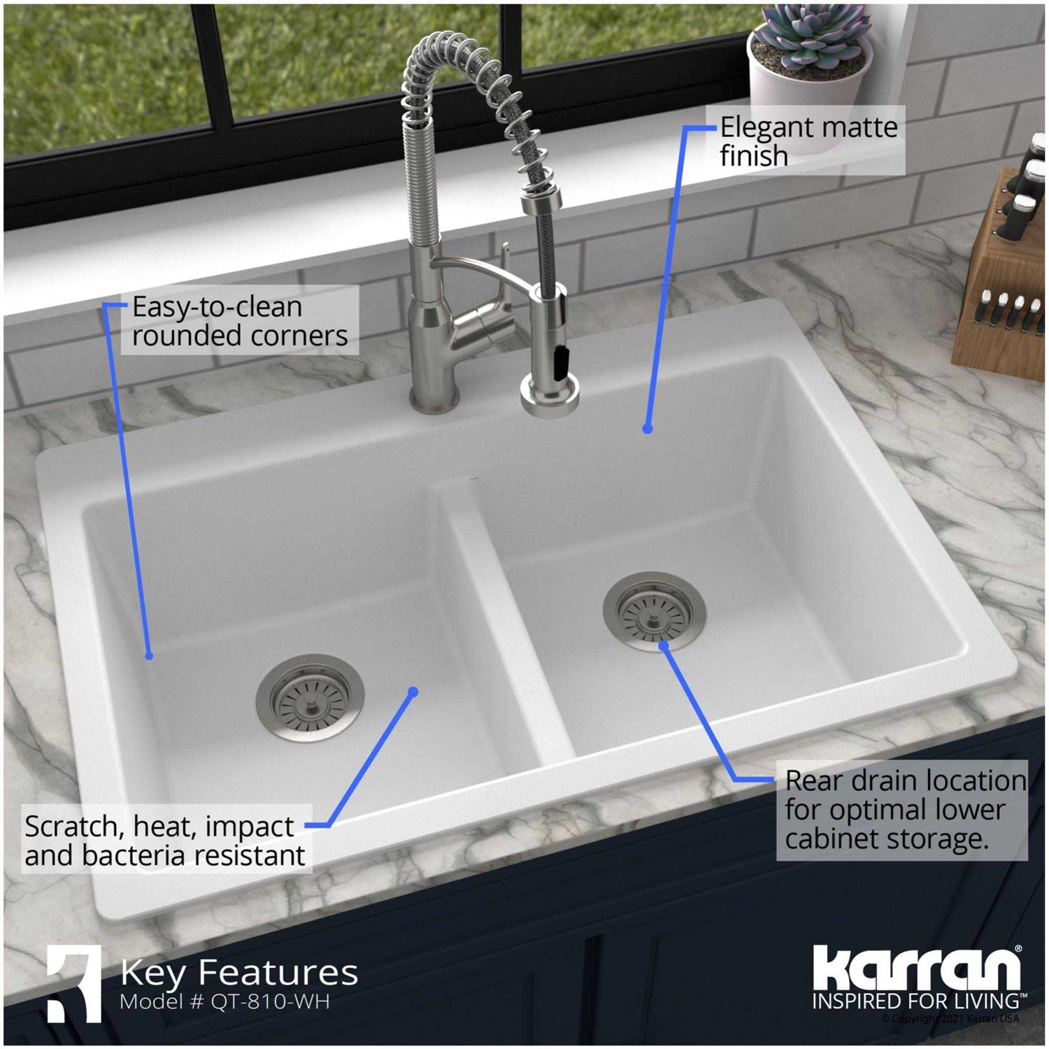 Karran Drop Quartz Composite Kitchen Sink 50/50 Double Bowl